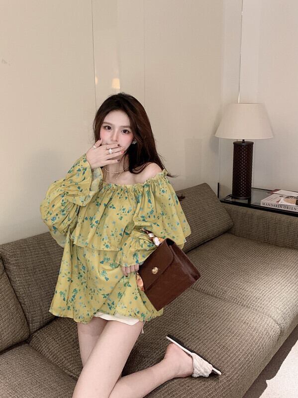 フローラルブラウス サマールーズスリーブシャツ ロング 夏物 花柄 Xiaofeijia4417002141