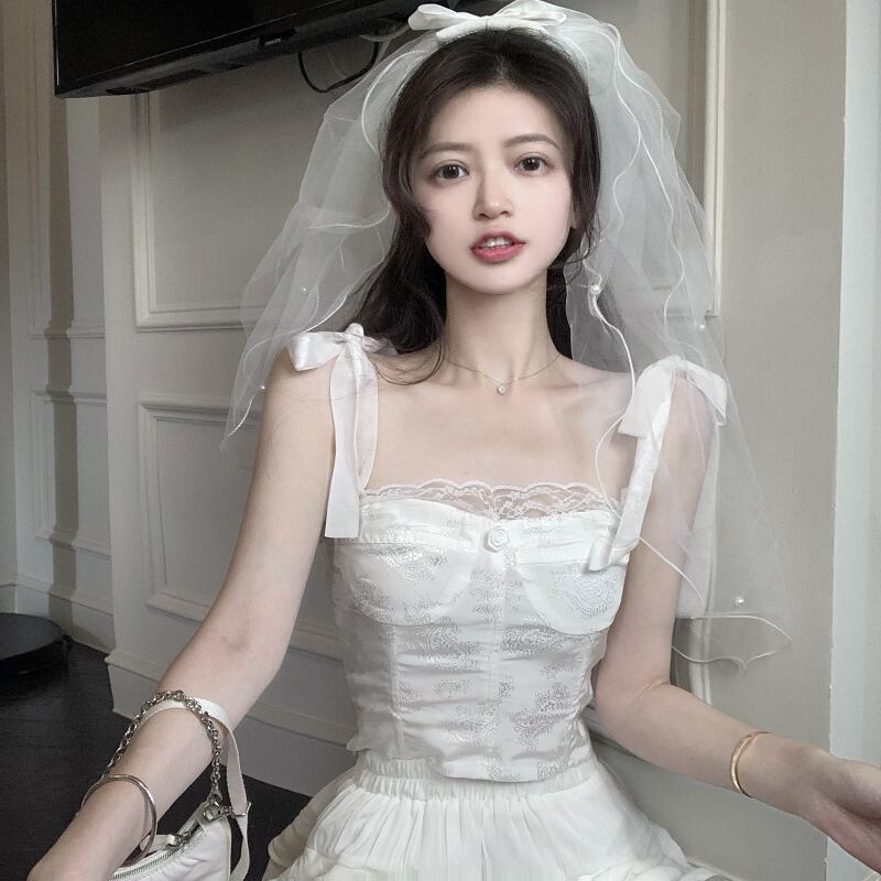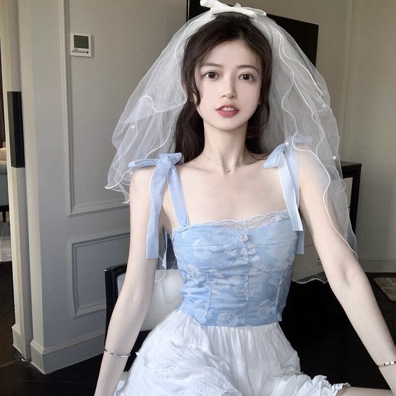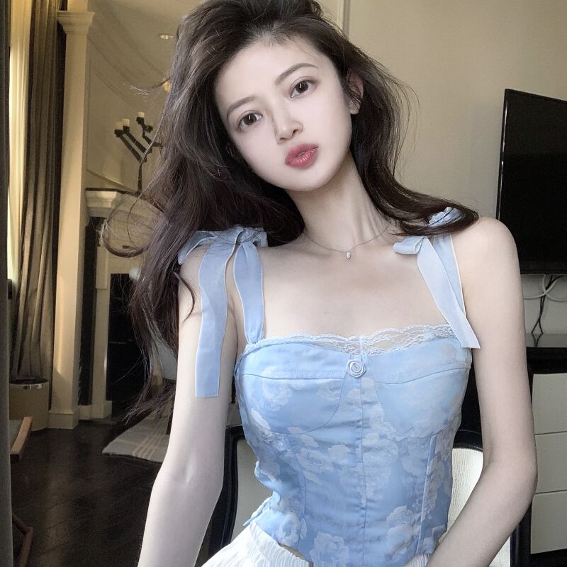 フローラルノースリーブリボンレースブラウス サマースリムショート 夏物 花柄 Xiaofeijia40149191379