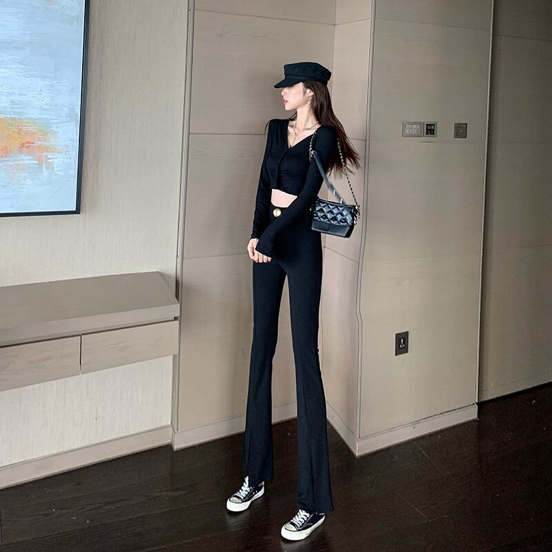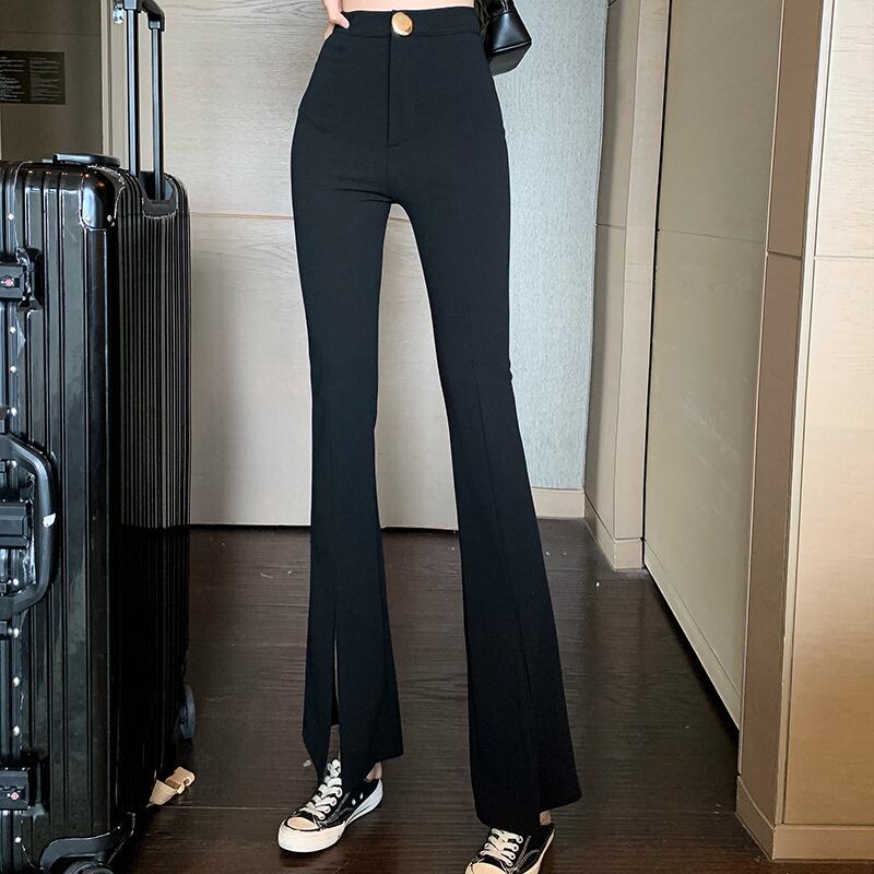 スリットパンツ サマースリムブラックカジュアルハイウェスト 夏物 Xiaofeijia46646254808