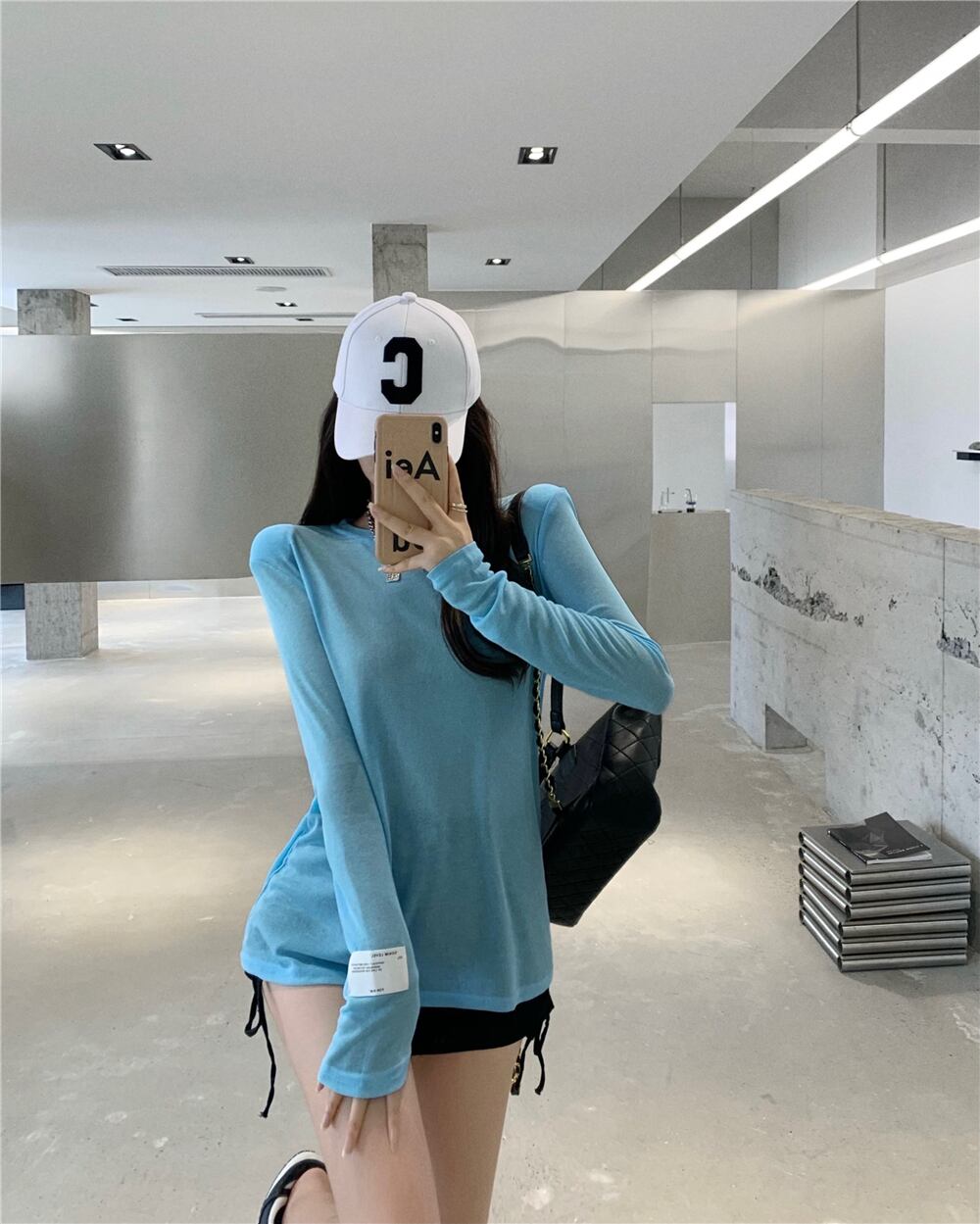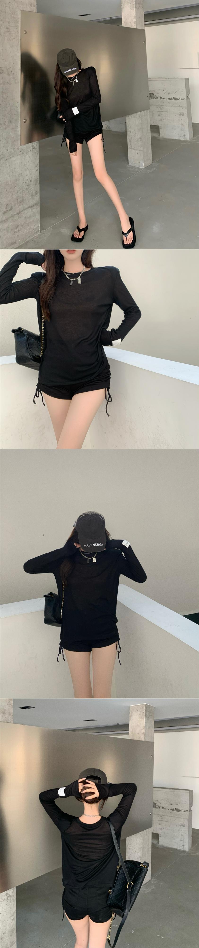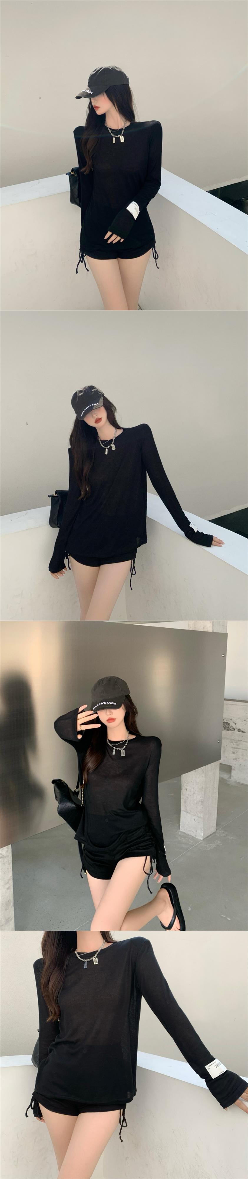 Tシャツ オータム薄手トップス ルーズラウンドネックブラウス ロング 秋物 Oネック Xiaofeijia83541280538
