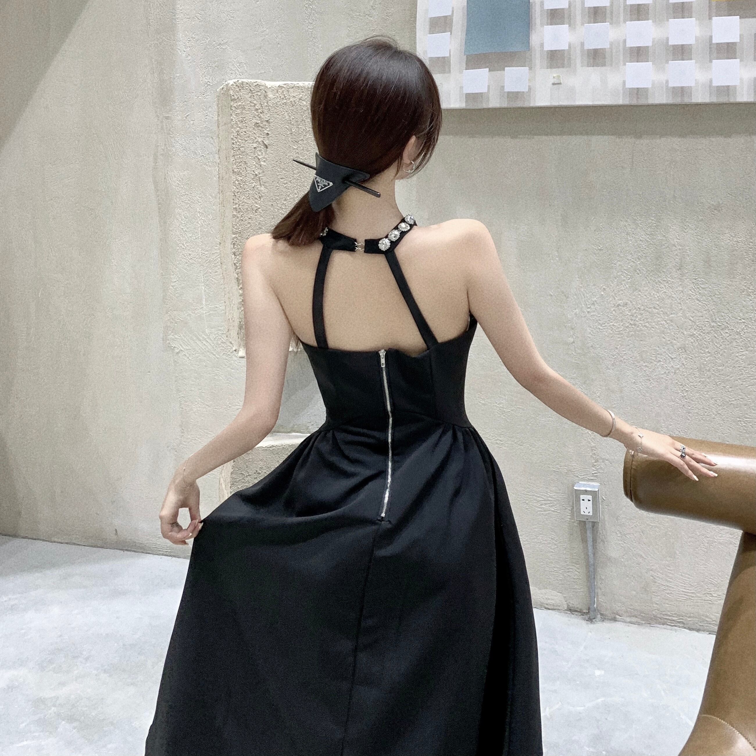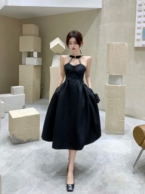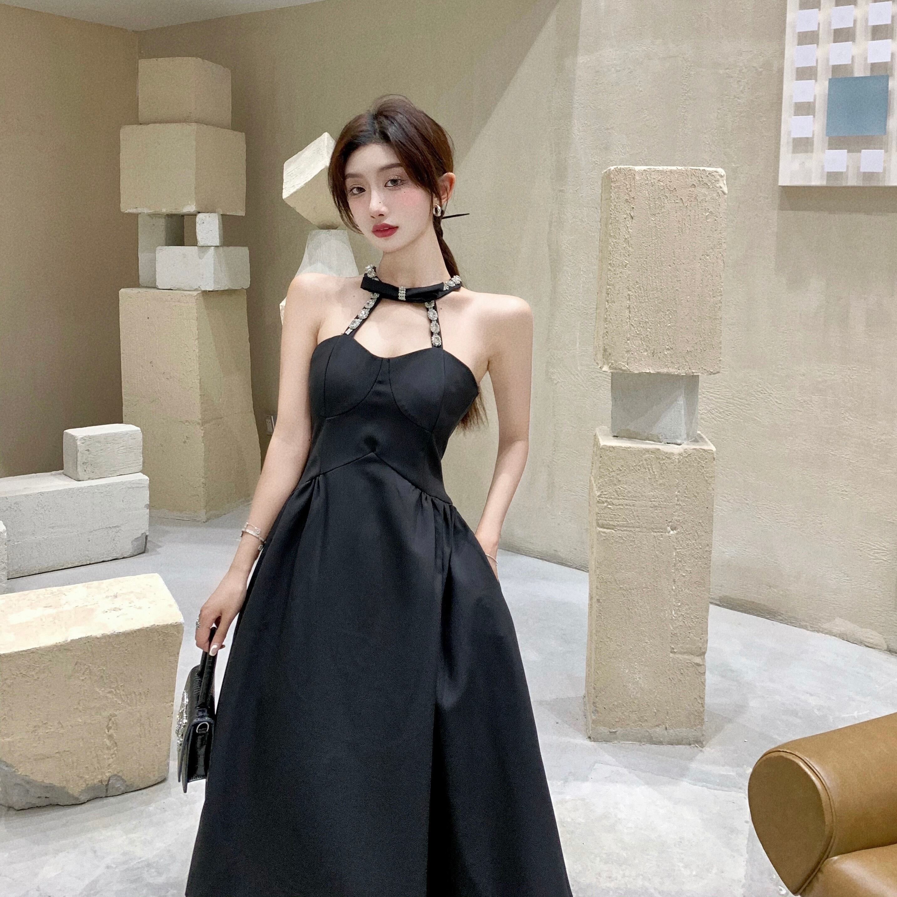 トップス ドレス サマーハイウェストウェストAラインスタイルブラックロングスカート 夏物 Xiaofeijia6406253384