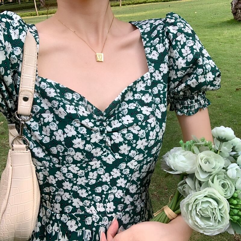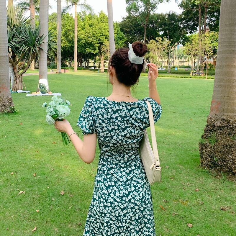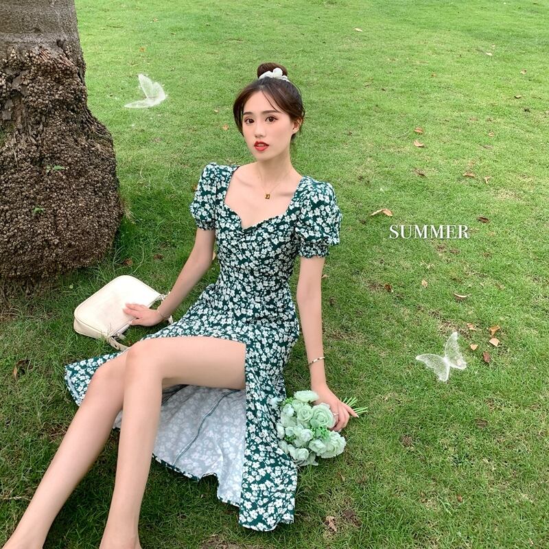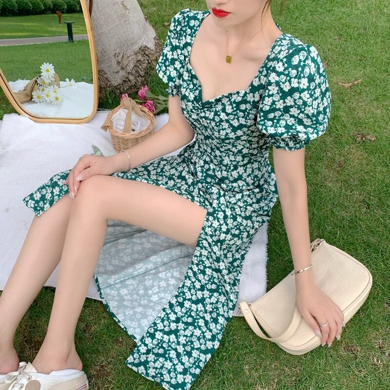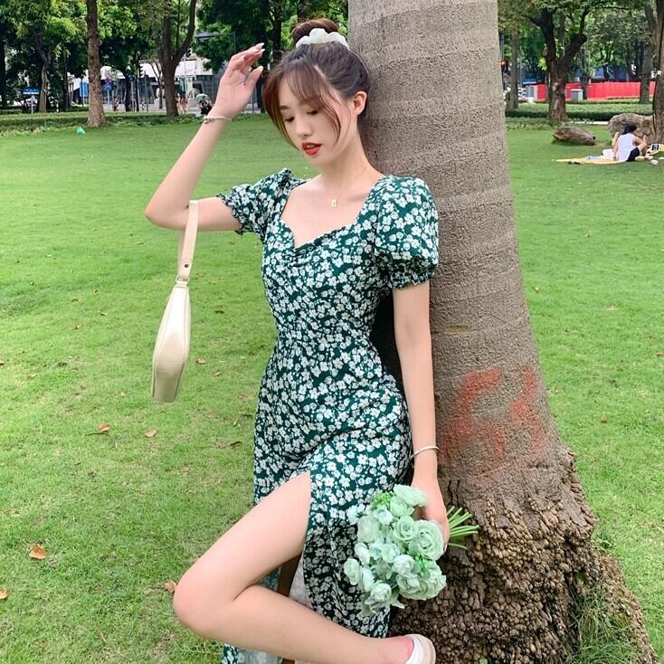 スタンダードフローラルドレス サマー薄手スリムスリットスカート レトロ 夏物 花柄 Xiaofeijia30198940060