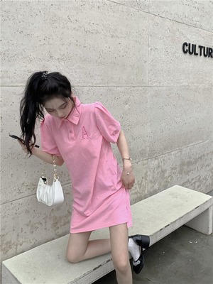 ルーズスリーブカラードレス サマーカジュアルスカート ピンク ストリート 大人ガーリー スウィート キュート 夏物 Xiaofeijia99472757574