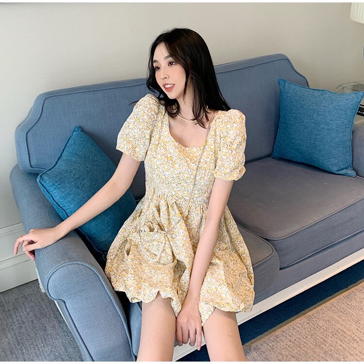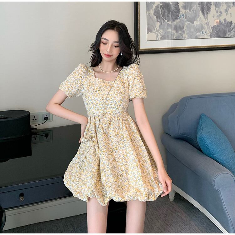 スタイルカラースリーブジャカードフローラルドレス レッド 刺繍 花柄 スクウェア Xiaofeijia44645354602