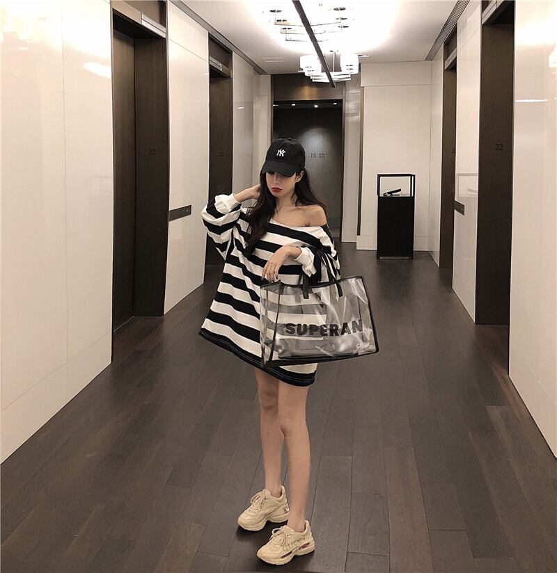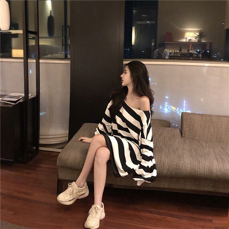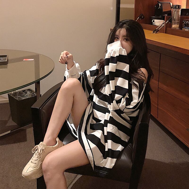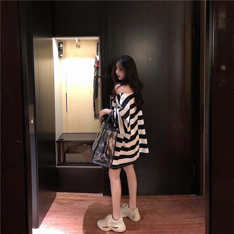 ストライプセーター スタイルルーズオータム薄手コート ロング 秋物 Xiaofeijia5480612459