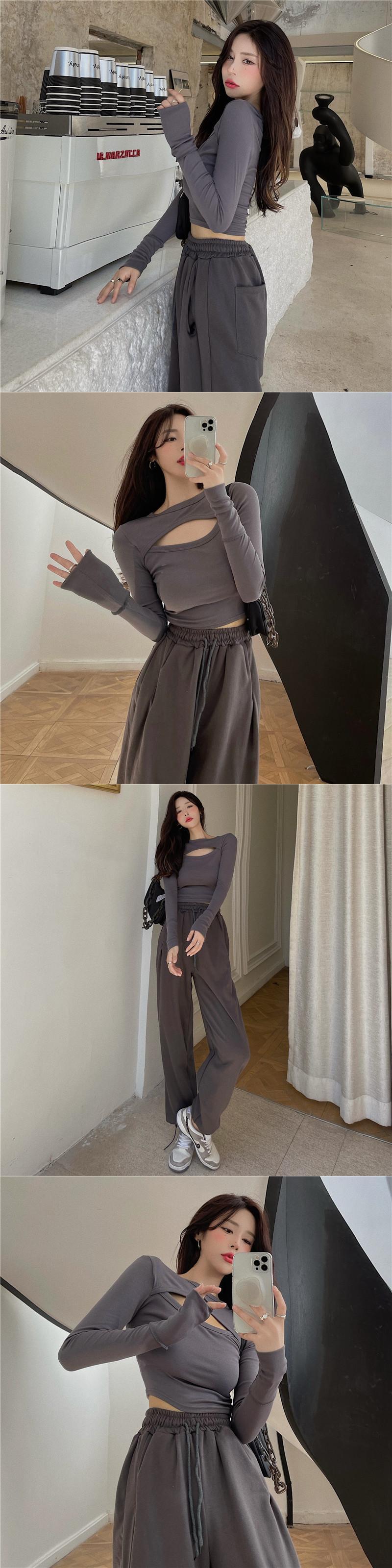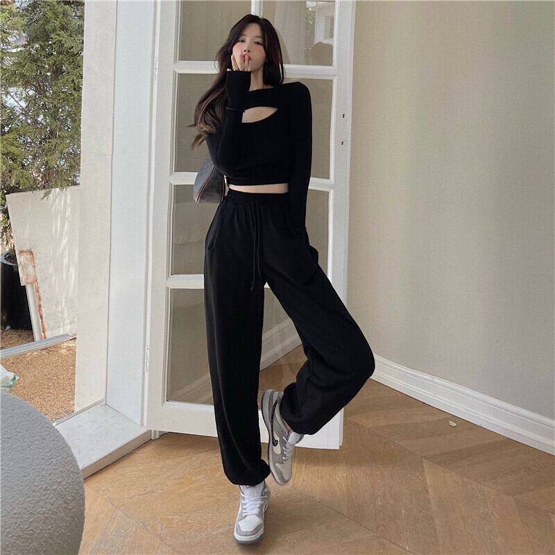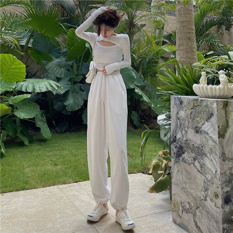 ギャザーウェストハイウェストパンツ オータムストレッチルーズカジュアルショートTシャツ エラスティック 伸縮 秋物 Xiaofeijia9869774153