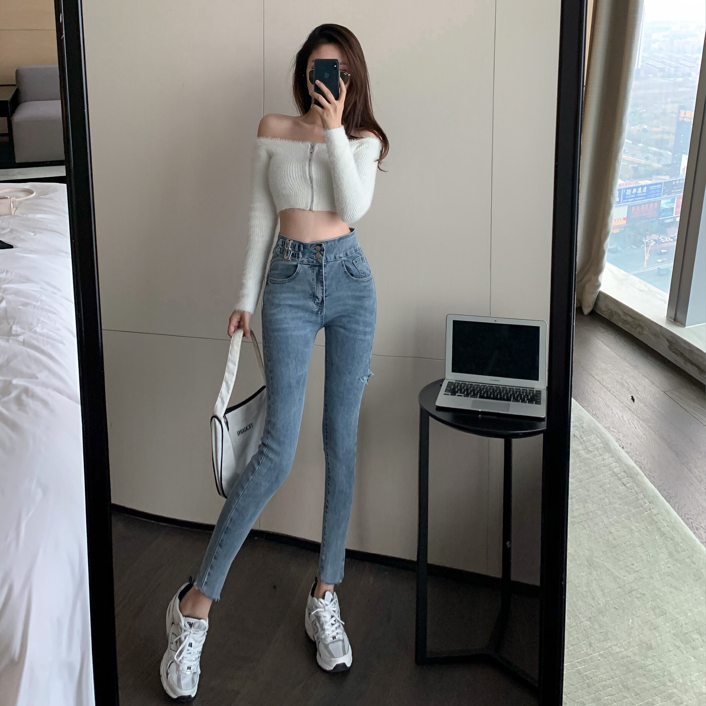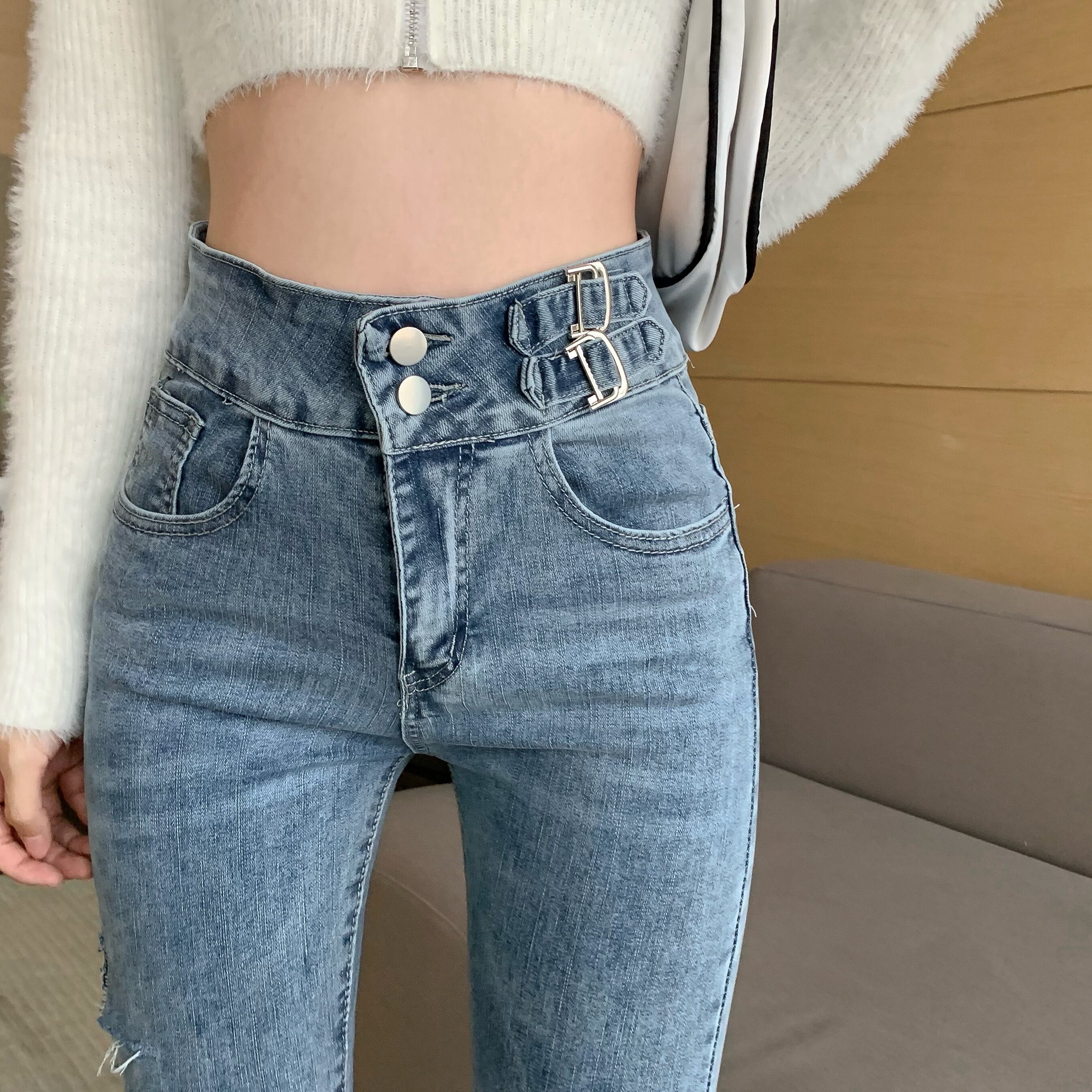 ハイウェストジーンズ スリムパンツ Xiaofeijia43843835274