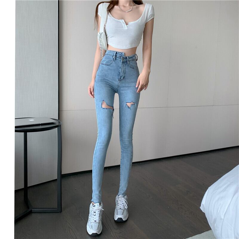 ジーンズ サマー薄手ハイウェストウェストスキニーパンツ 夏物 Xiaofeijia98071660909
