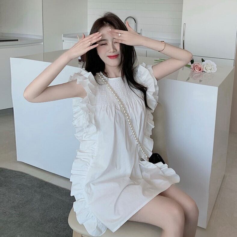 ホワイトスカート サマースタイルノースリーブドレス ルーズ 大人ガーリー スウィート キュート カジュアル 夏物 Xiaofeijia56948864288