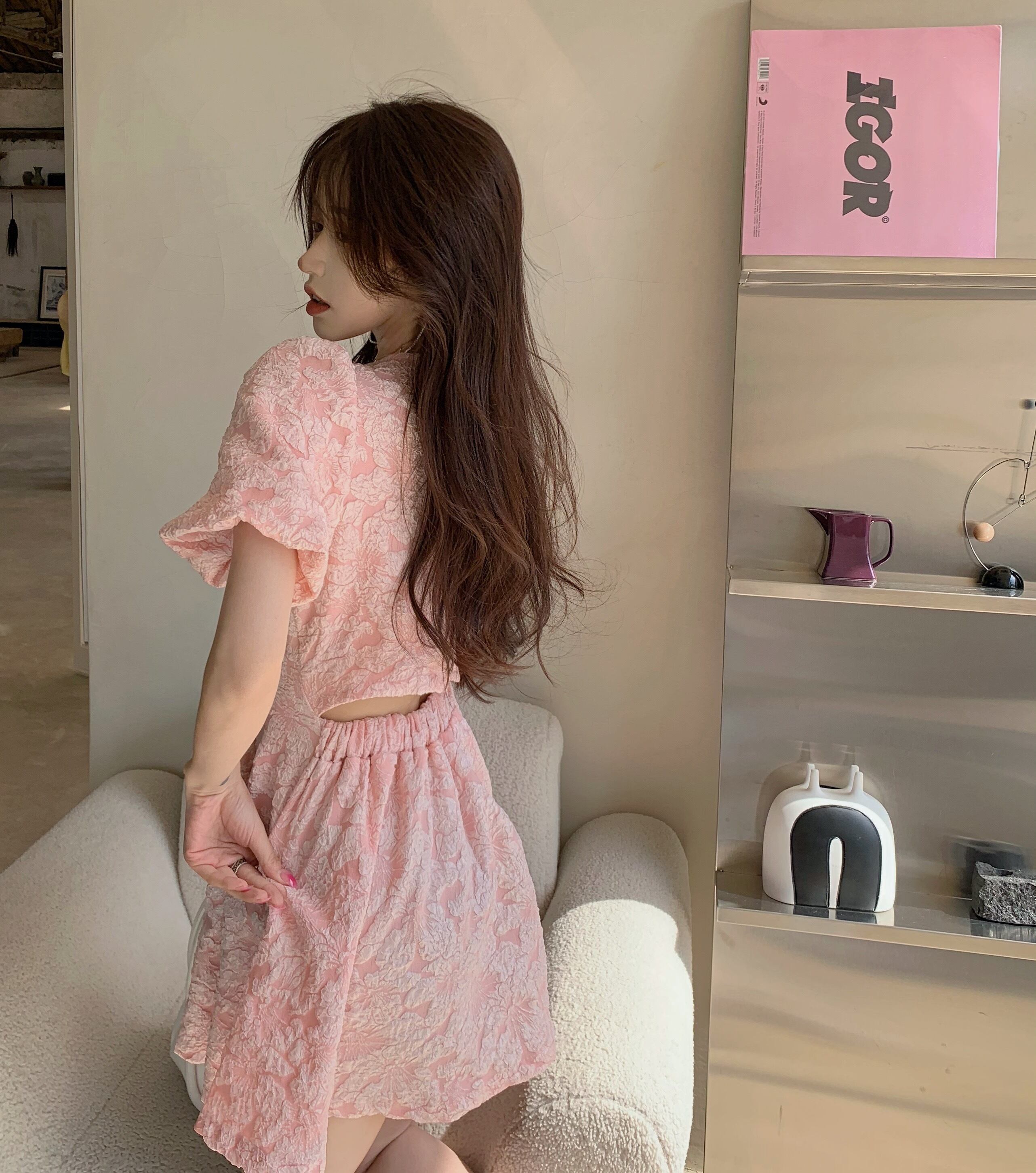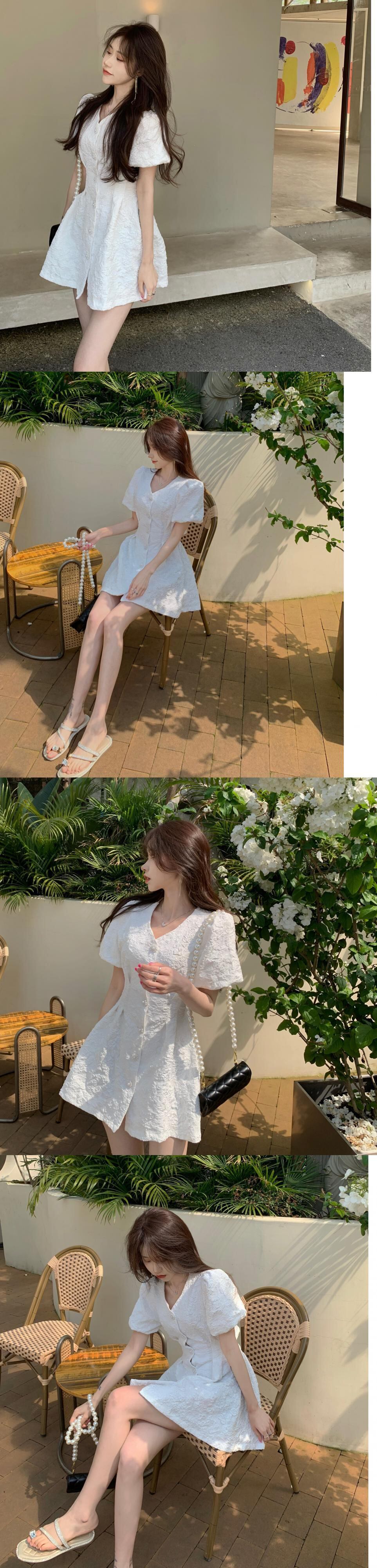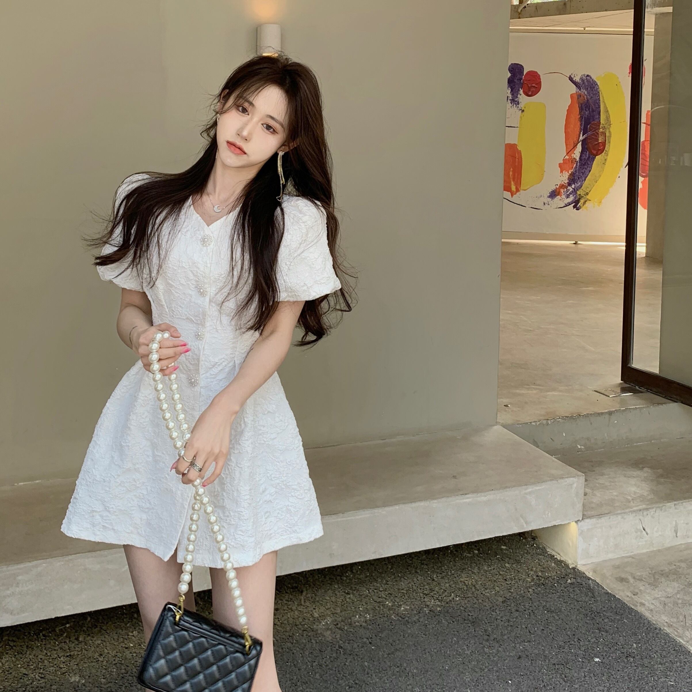 ウェストサマーVネックスリーブドレス 夏物 Xiaofeijia86912756474