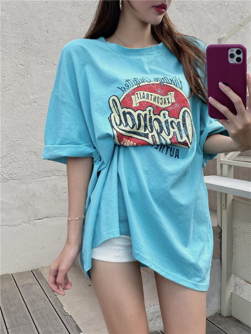 プリントTシャツ サマールーズラウンドネックトップス 夏物 Oネック Xiaofeijia74393261495