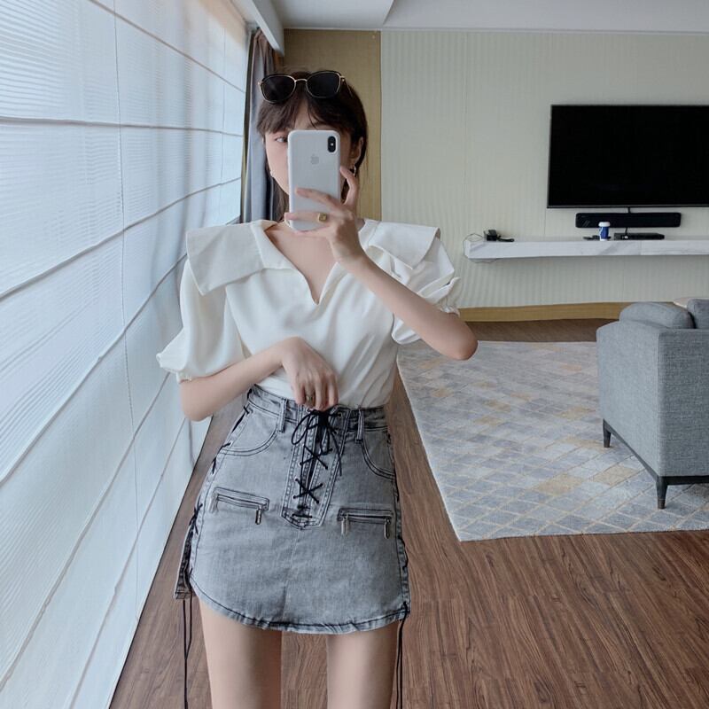 スカート サマーハイウェストウェストショート 夏物 Xiaofeijia58656690041