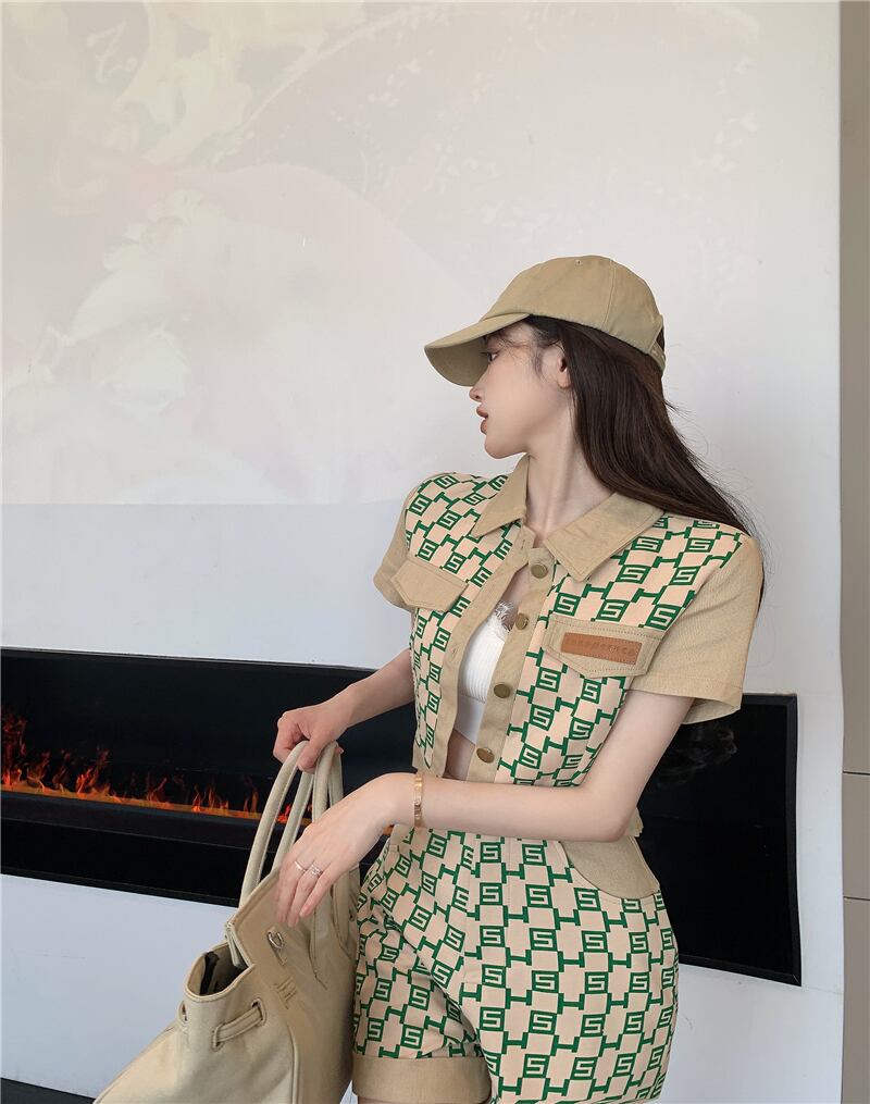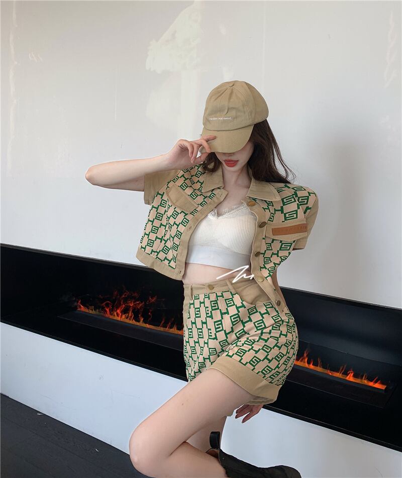 カジュアルショーツ レディースサマースタンダードカラープリントシャツ レトロ ストリート 夏物 ブルマー Xiaofeijia42109949781