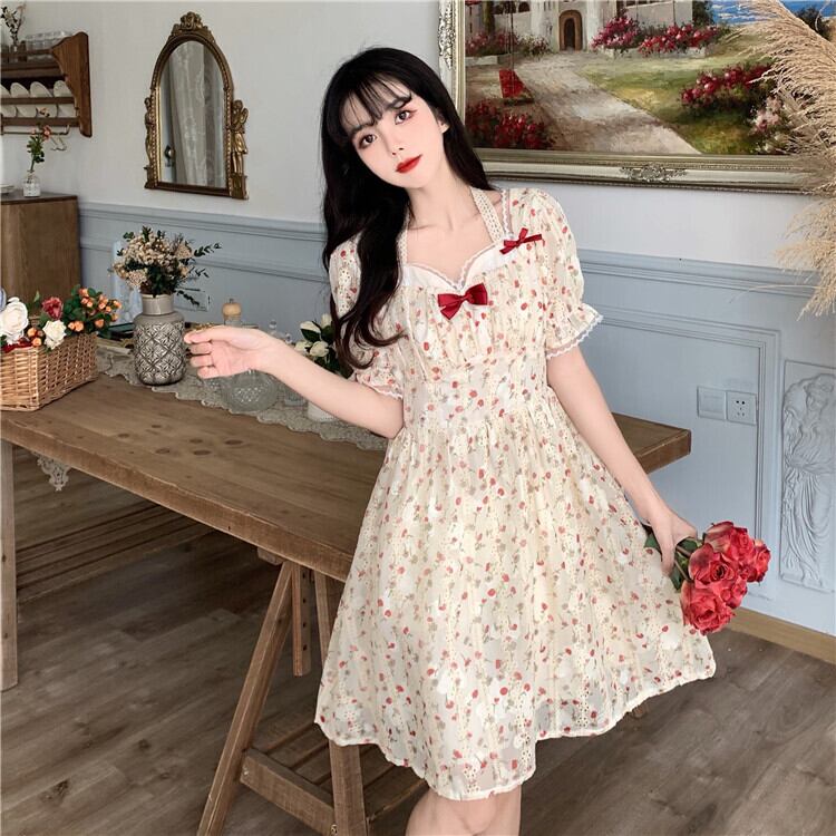 フローラルスカート ウェストドレス サマー リボン 夏物 花柄 Xiaofeijia20015481805