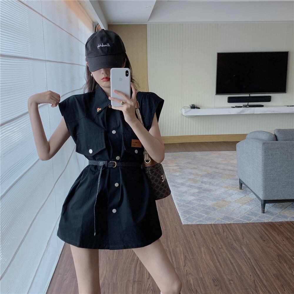 ジャケット サマースタンダードウェストベルト ルーズノースリーブスプリングオータム レトロ 春物 夏物 秋物 ハーネス Xiaofeijia92531879380