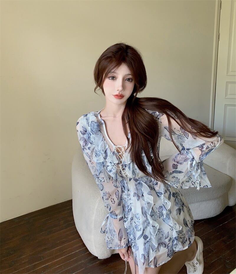 レースフローラルドレス 花柄 Xiaofeijia79039313091