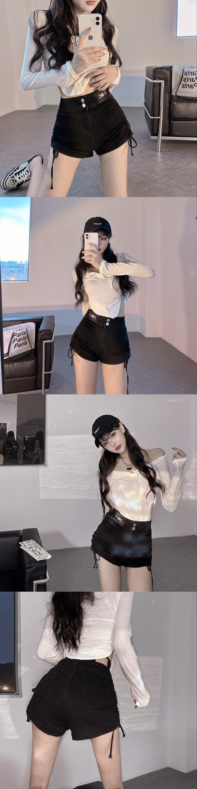 レッドショーツ サマーギャザージーンズ 薄手ワイドレッグパンツ ハイウェストウェスト 夏物 ブルマー ワイドパンツ Xiaofeijia74404513330