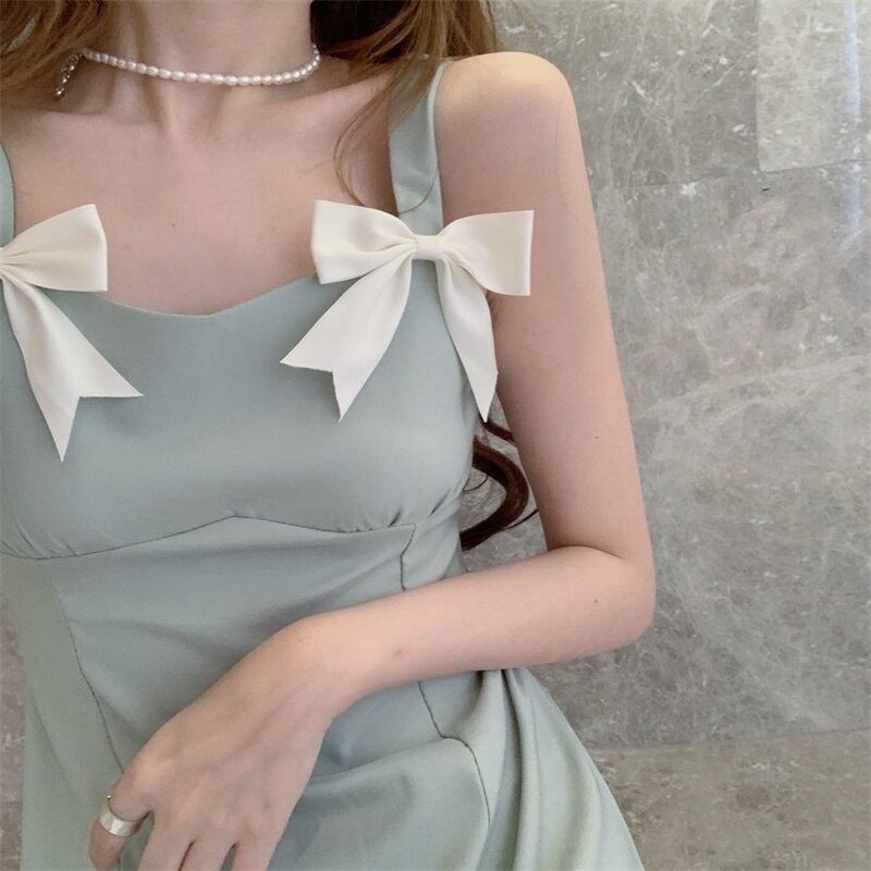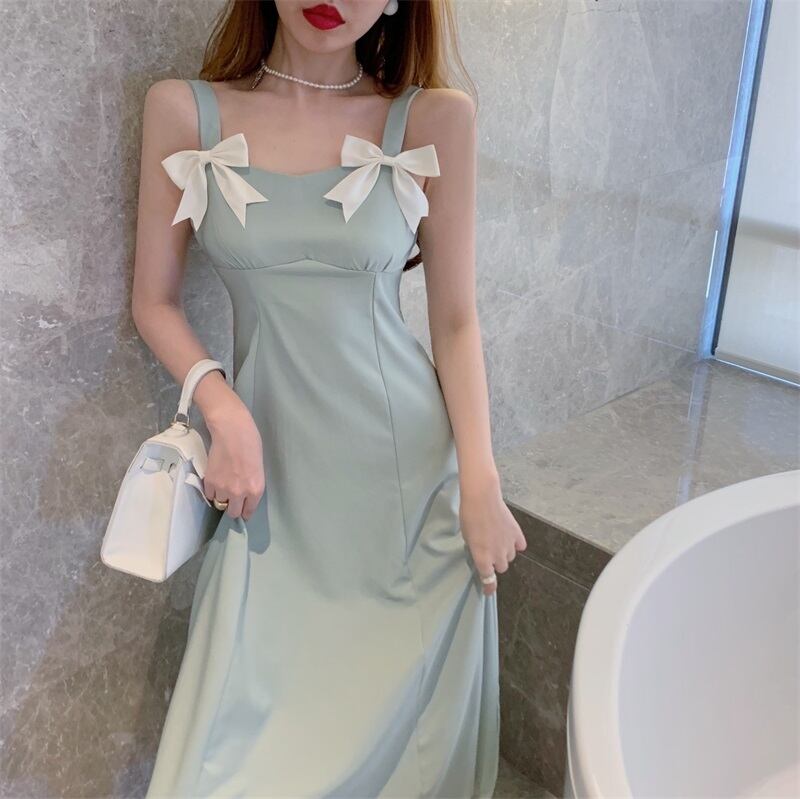 ドレス サマーバックレスパールチェーン ロングスカート リボン 大人ガーリー スウィート キュート カジュアル 夏物 真珠 Xiaofeijia51321447560