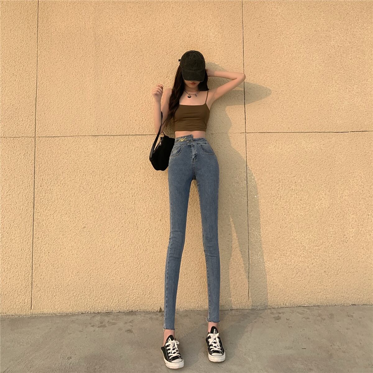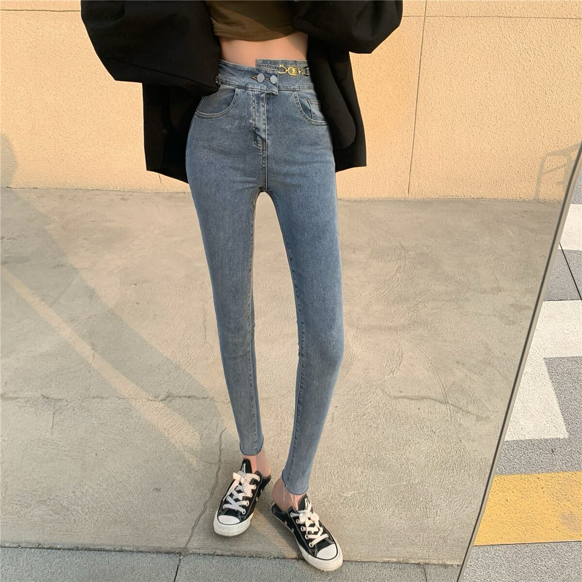 ジーンズ スプリングウェストチェーン パンツ スリム 春物 Xiaofeijia36509013595
