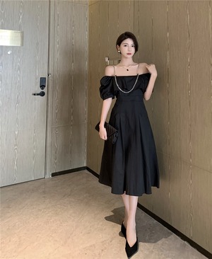 ブラックドレス サマーウェストスリーブチェーン スカート 夏物 Xiaofeijia18035169179