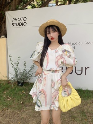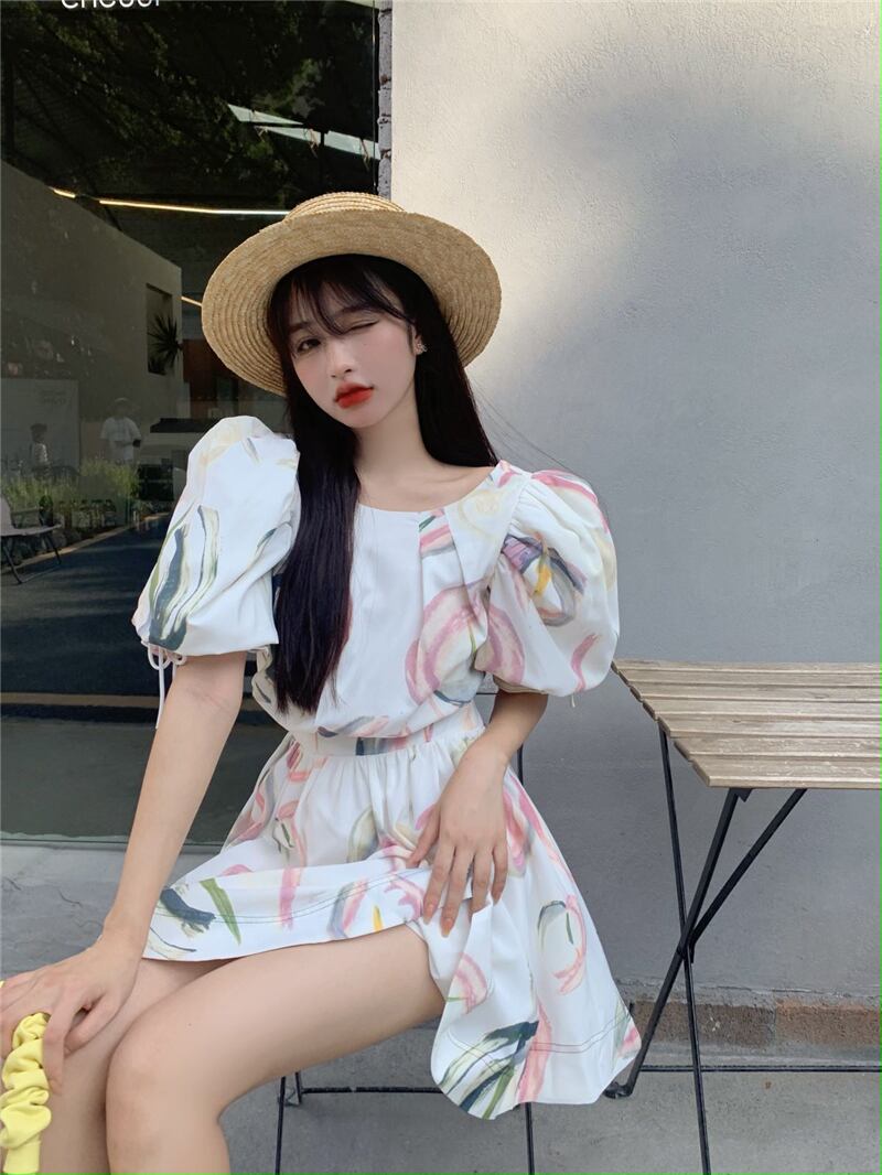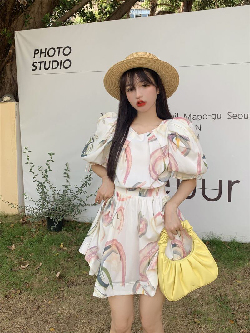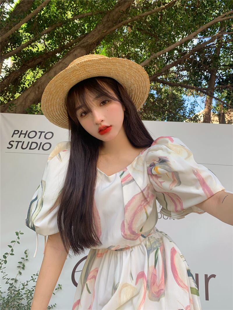 スタンダードスリーブホルターフローラルドレス レトロ 花柄 Xiaofeijia56795765932