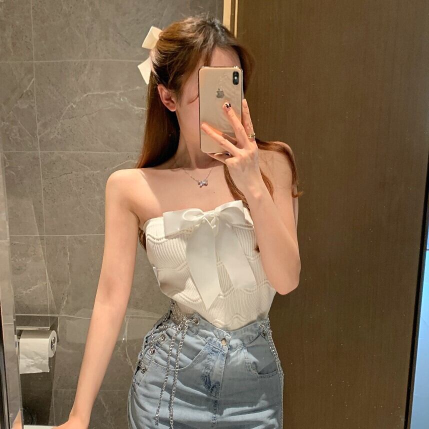 ニットトップス ショートサマーノースリーブシャツ レディース 夏物 Xiaofeijia49684088561