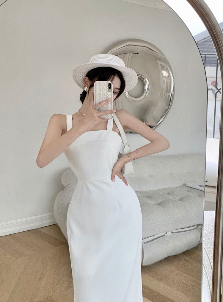ロングスカート スリムバックレスドレス アジャスタブル Xiaofeijia61697882708