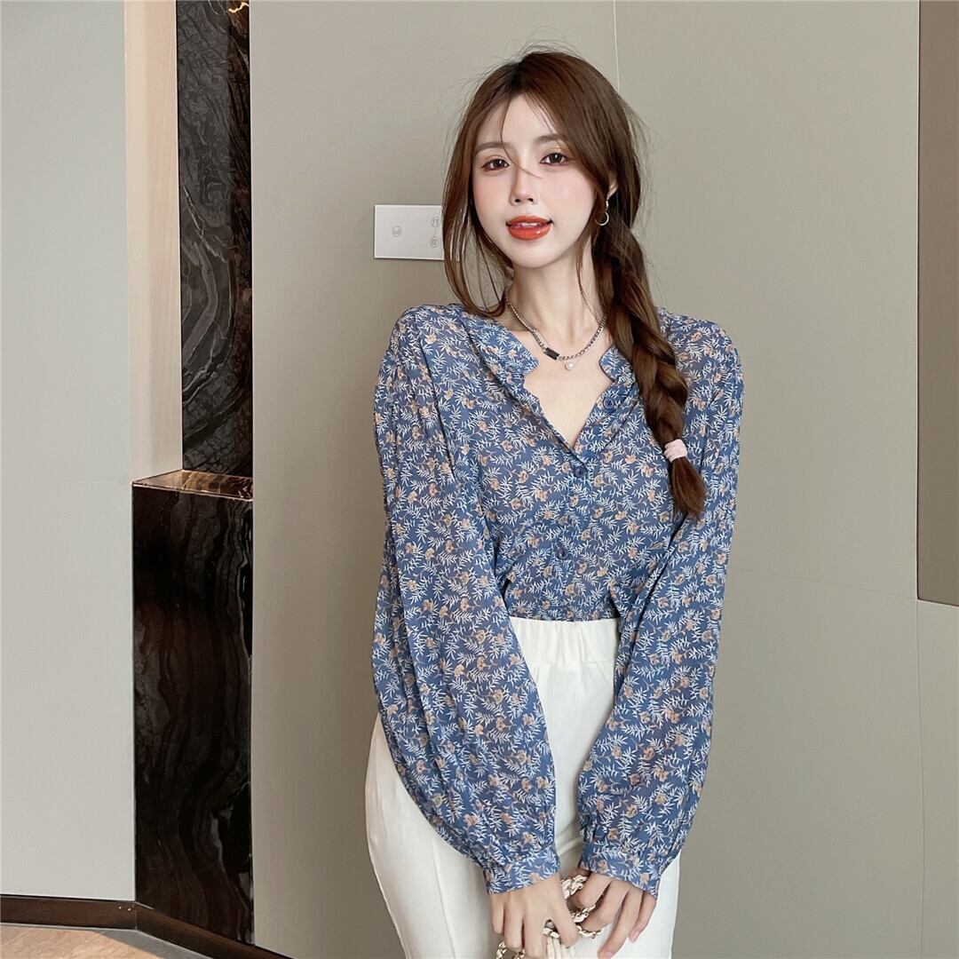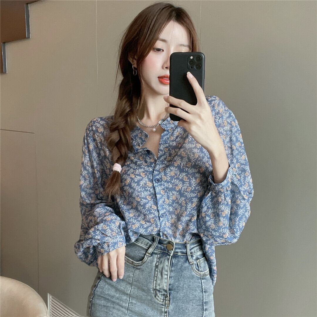スタンダードフローラルシフォンシャツ スタイルトップス ロング レッド レトロ 大人ガーリー スウィート キュート カジュアル 花柄 Xiaofeijia69801677148