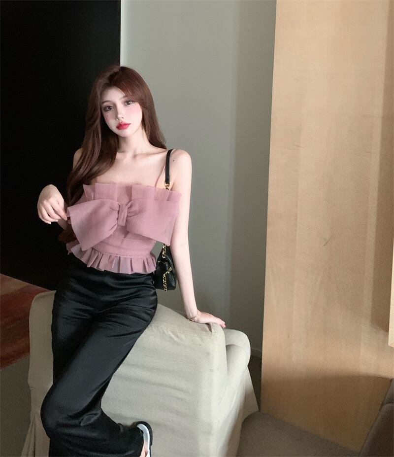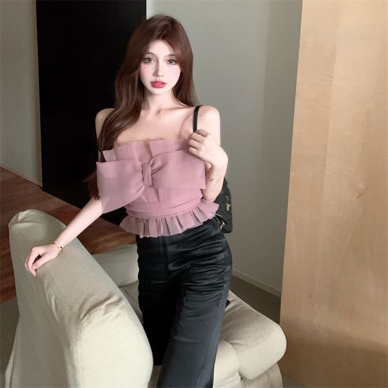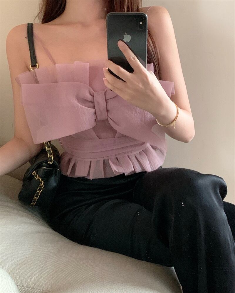 リボンサマーショートトップス 大人ガーリー スウィート キュート カジュアル 夏物 Xiaofeijia23209462517