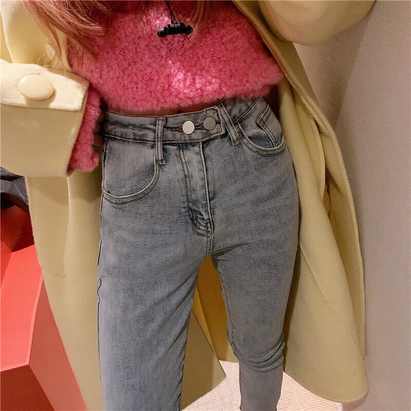 ジーンズ スプリングダブルバックルレギンス 薄手パンツ ハイウェスト 春物 Xiaofeijia70684241620