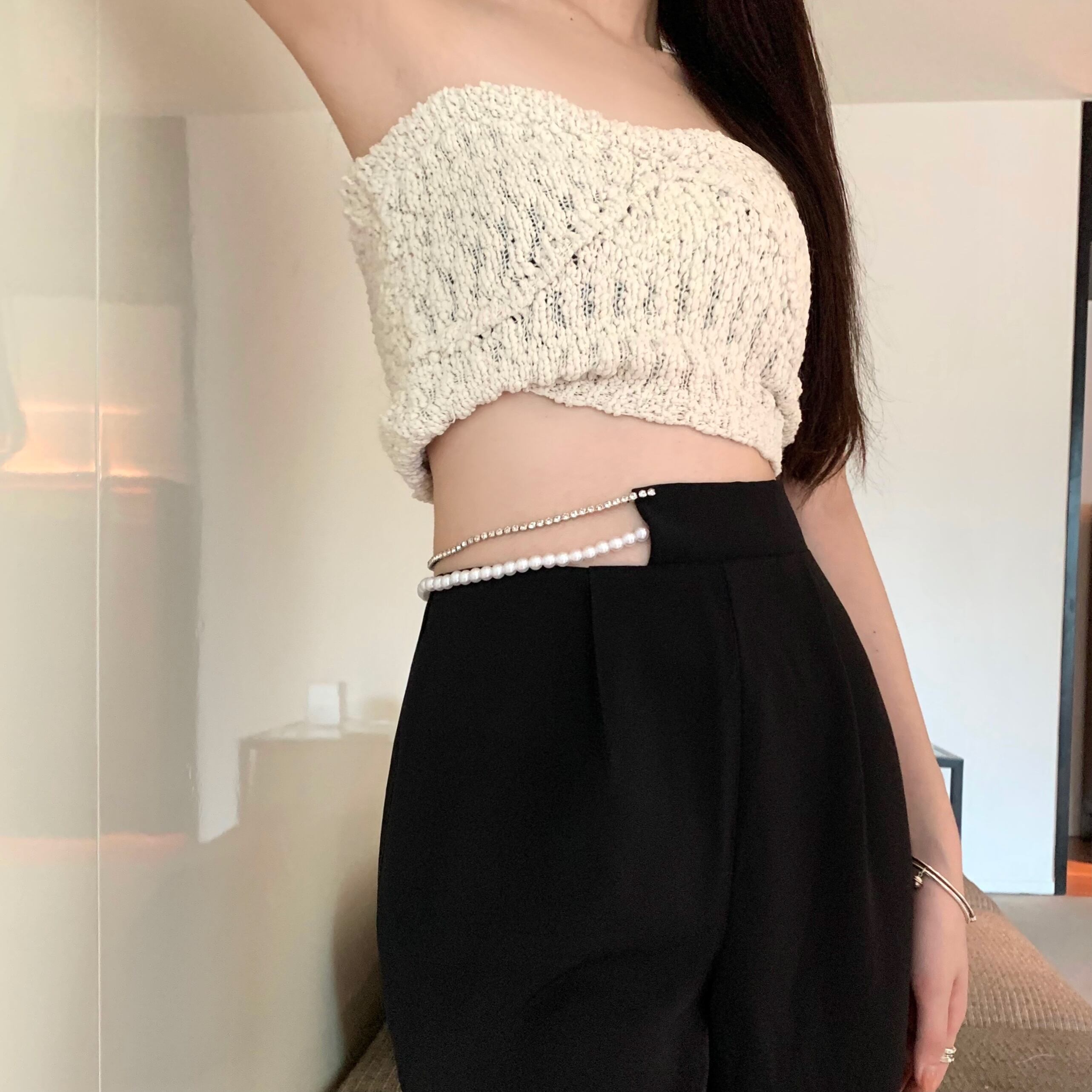 ウェストパールラインストーンチェーン カジュアルパンツ 真珠 Xiaofeijia81936155351