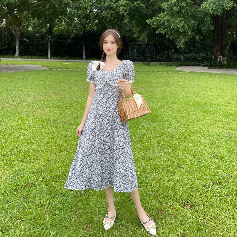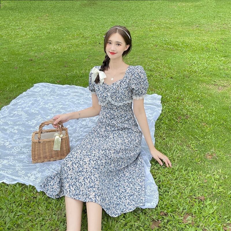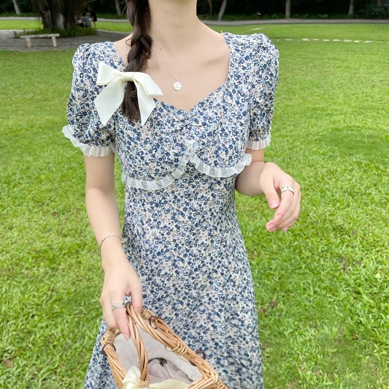 カラースタンダードフローラルドレス レトロ 花柄 スクウェア ステッチ Xiaofeijia30227921028