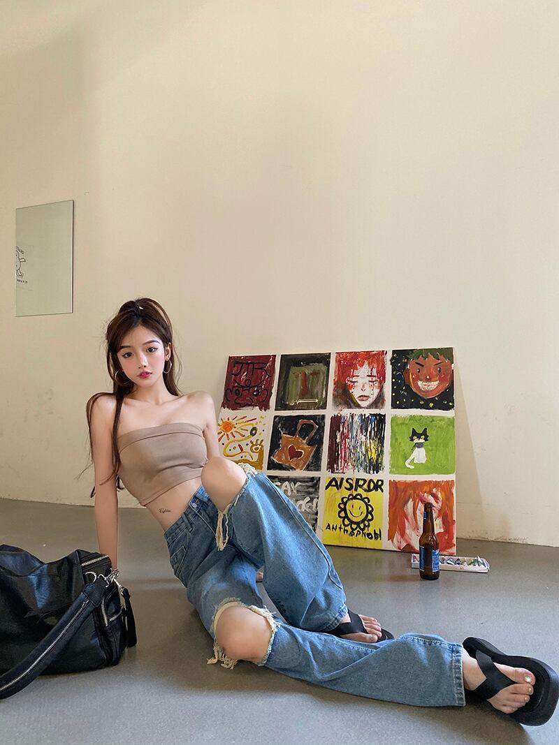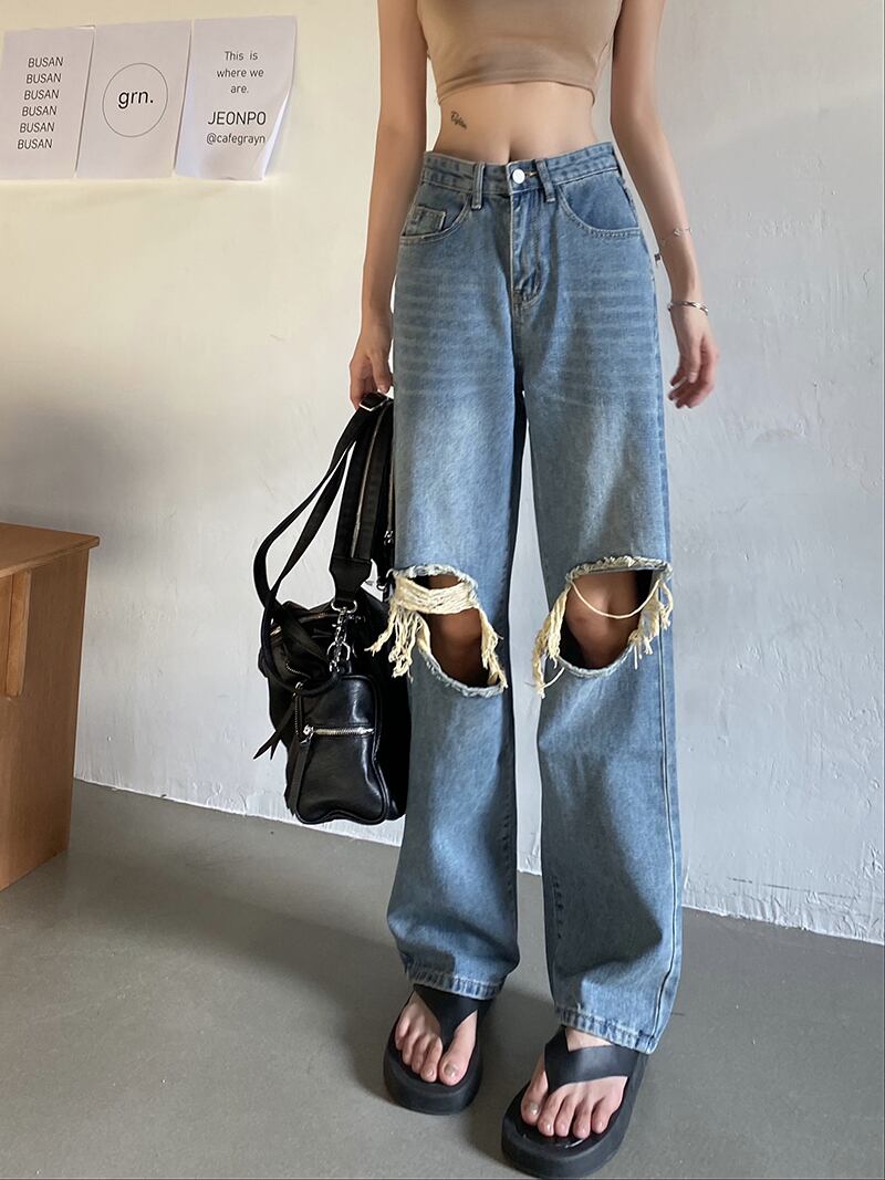 ジーンズ ルーズサマー薄手ハイウェストパンツ 夏物 Xiaofeijia10538480088