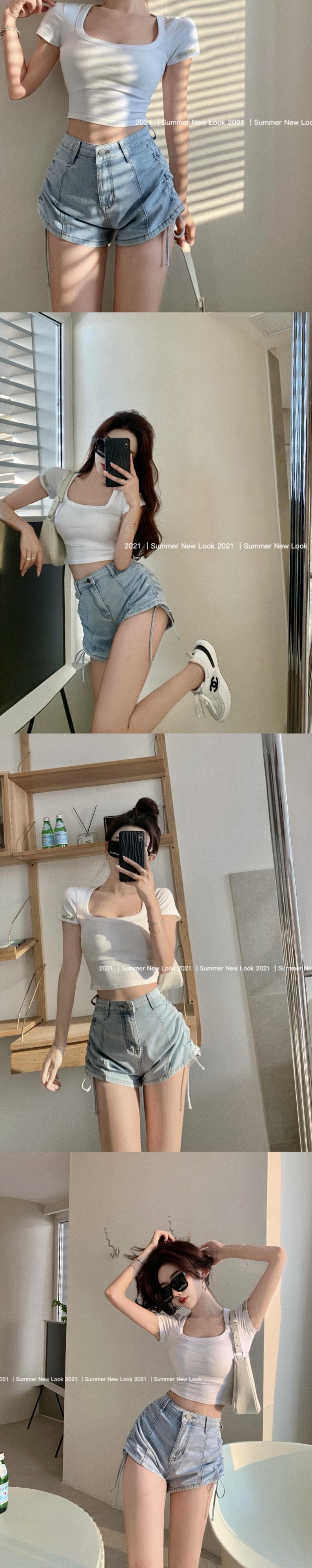 スタイルハイウェストウェストスリムギャザーロングパンツ ショーツ ブルマー Xiaofeijia29493330928