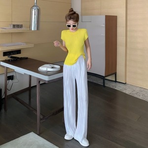 プリーツパンツ サマーカジュアルルーズ薄手ストレッチハイウェストウェスト エラスティック 伸縮 夏物 Xiaofeijia62301961477