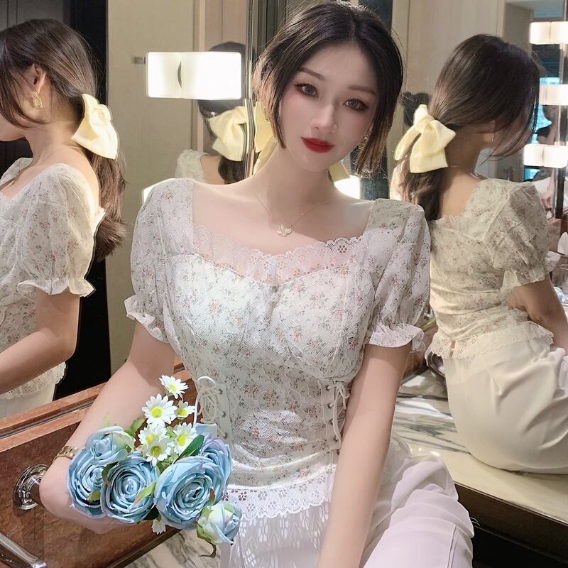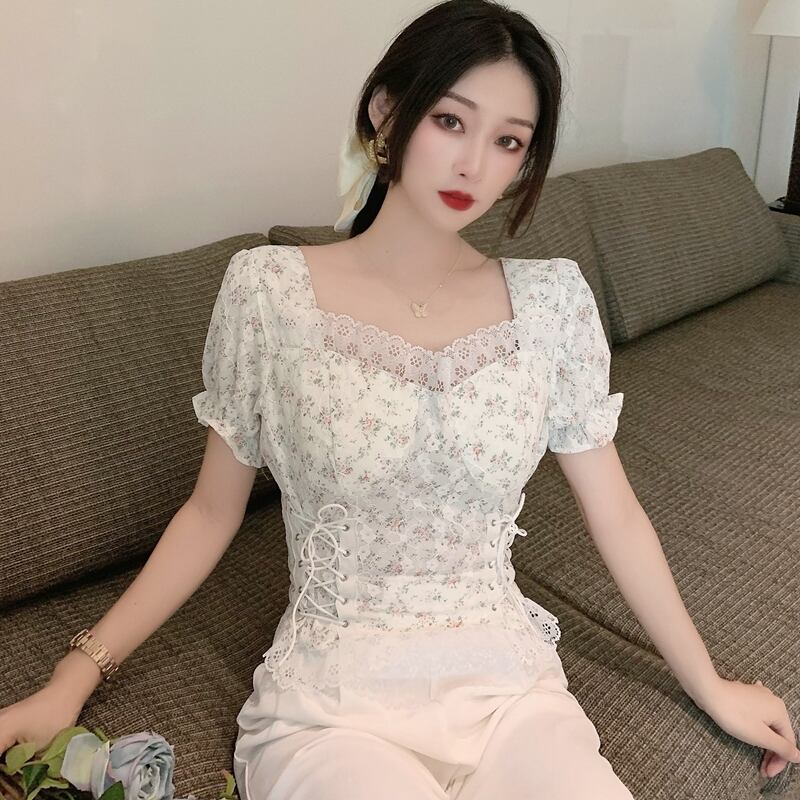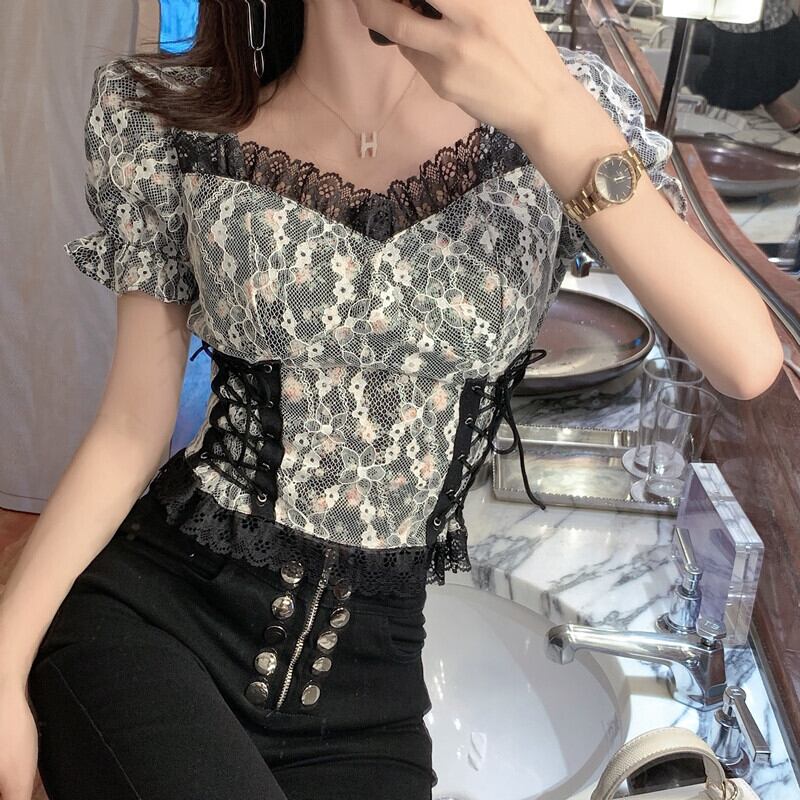 ウェストベルト レースシャツ ブラウス サマー 夏物 ハーネス Xiaofeijia37706916423