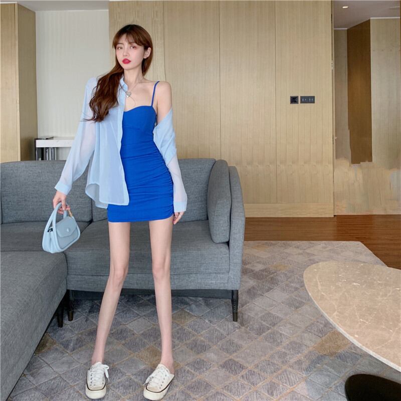 ホワイトセット スリムフィットプリーツドレス 薄手シャツ サマーレディース 夏物 Xiaofeijia26486813028