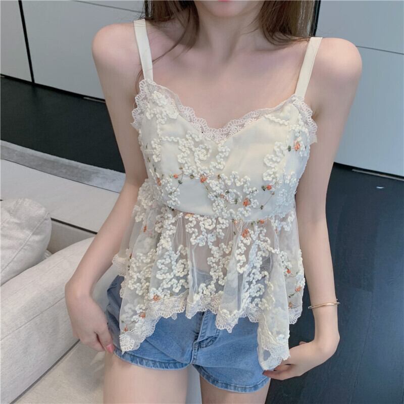 Flowerデザイン 刺繍レーストップス Vネック フラワーデザイン Xiaofeijia14559930377
