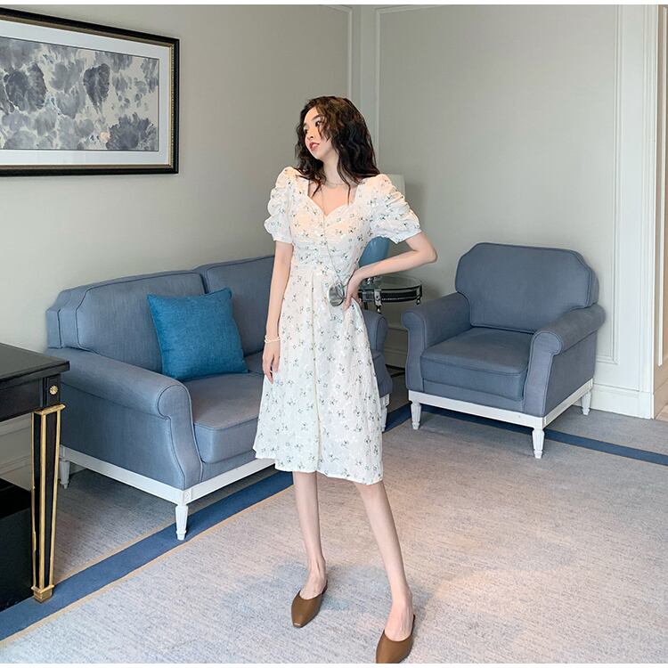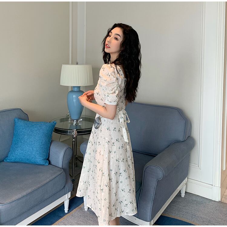 ドレス カラープリーツグリーンフローラルAラインスカート 花柄 スクウェア Xiaofeijia16847271922