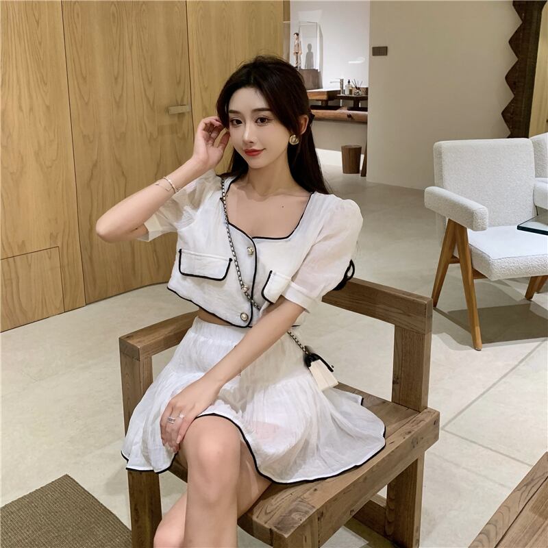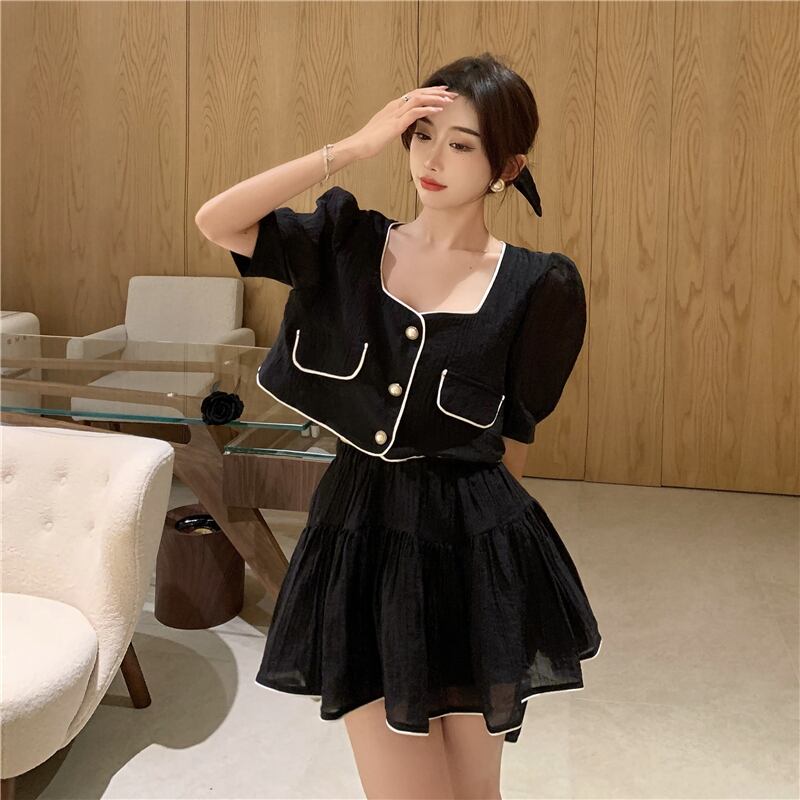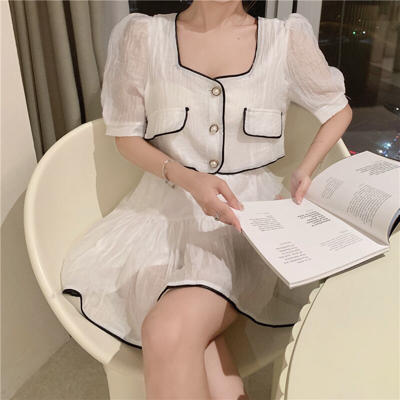 スカート サマーカラースリーブショートトップス ふわふわ 夏物 スクウェア Xiaofeijia53582767001