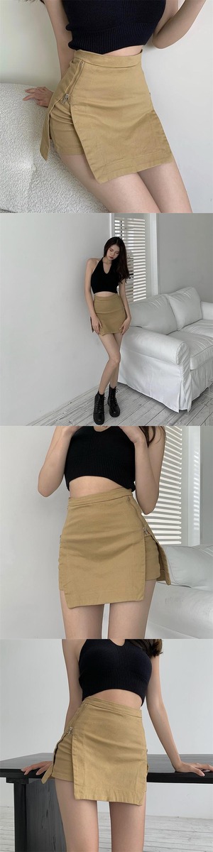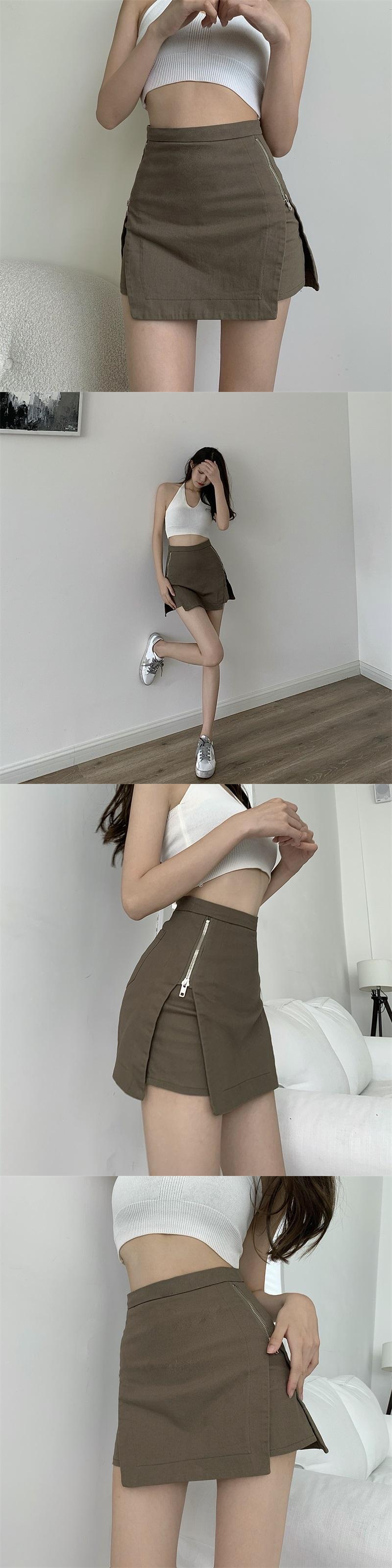 スタイルダブルジッパースカート サマーAラインショート薄手ハイウェストウェストパンツ 夏物 Xiaofeijia41660027739