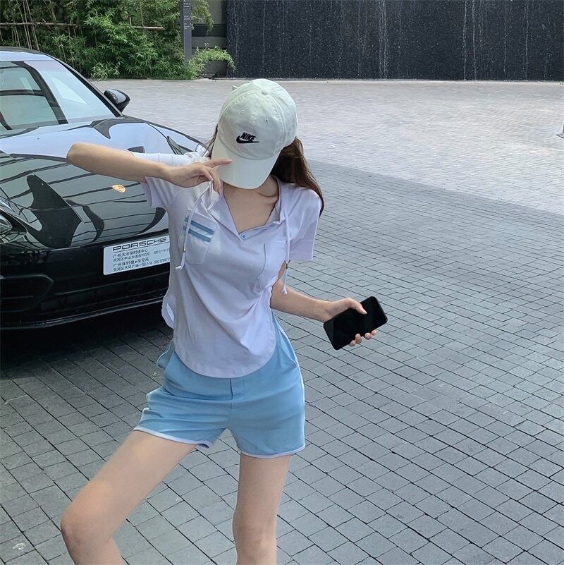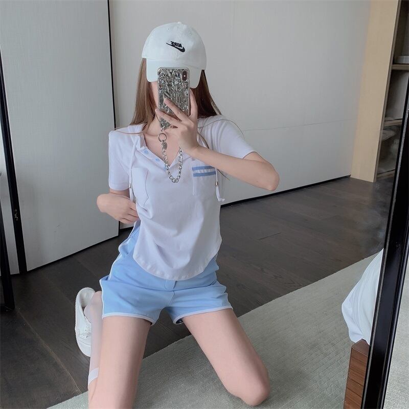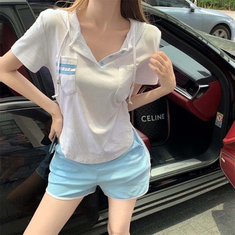 フードTシャツ トップス ハイウェストウェストショーツ ブルマー Xiaofeijia4365226461