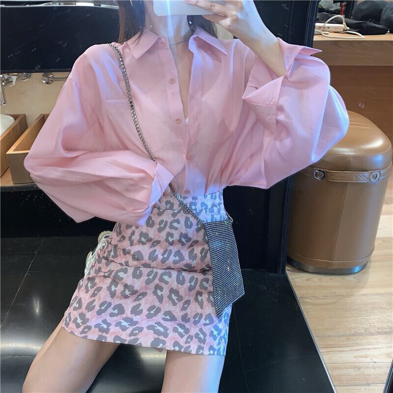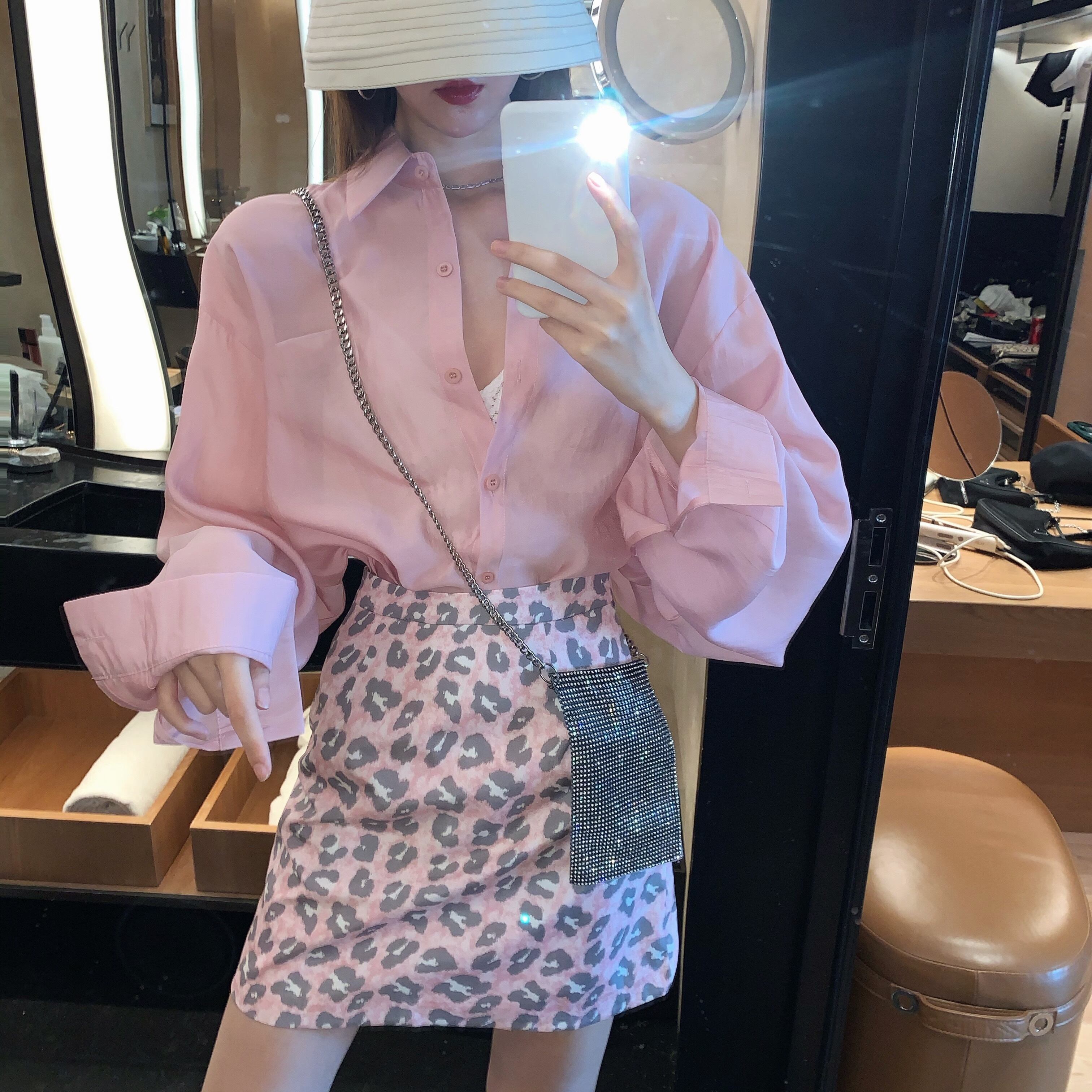 ルーズ薄手シャツ ハイウェストウェストレオパードプリント柄Aラインスカート スプリング 春物 Xiaofeijia83560701403