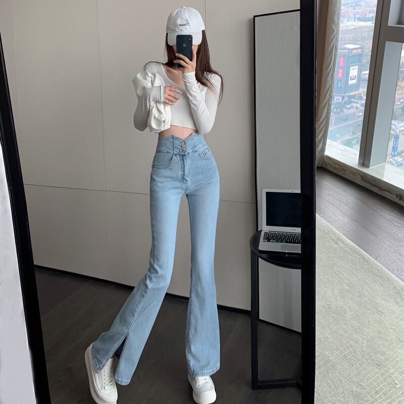 ジーンズ スプリングスリムハイウェストパンツ 春物 Xiaofeijia3597842917
