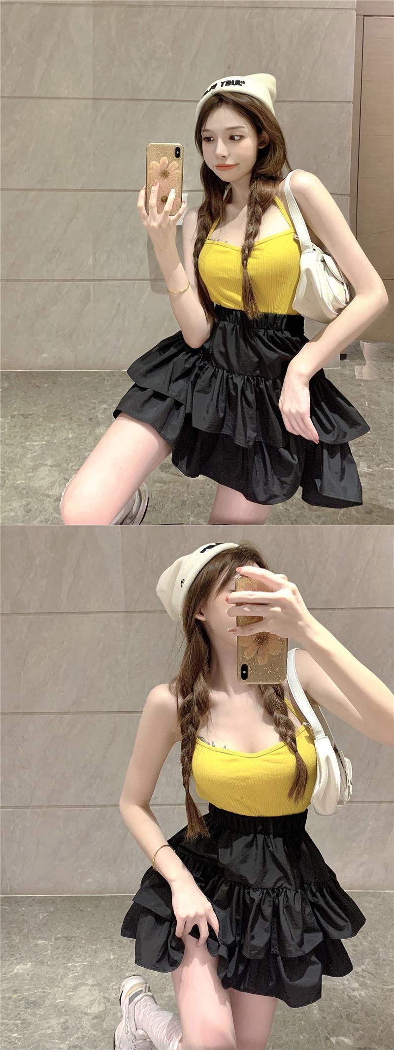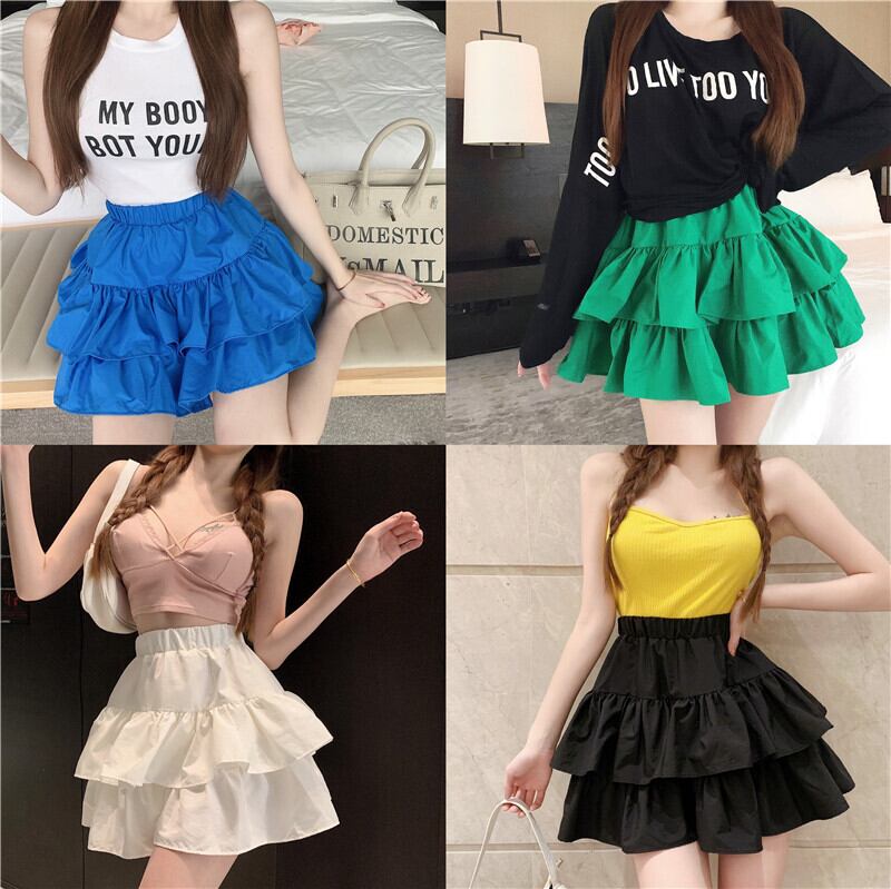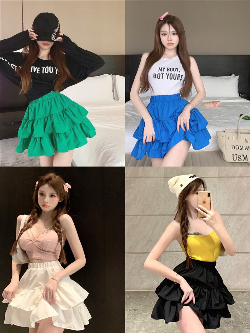 サマースカート ハイウェストウェストショート ふわふわ 夏物 Xiaofeijia67996424668