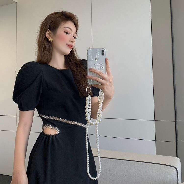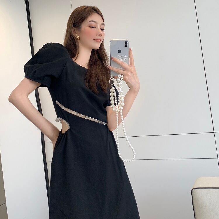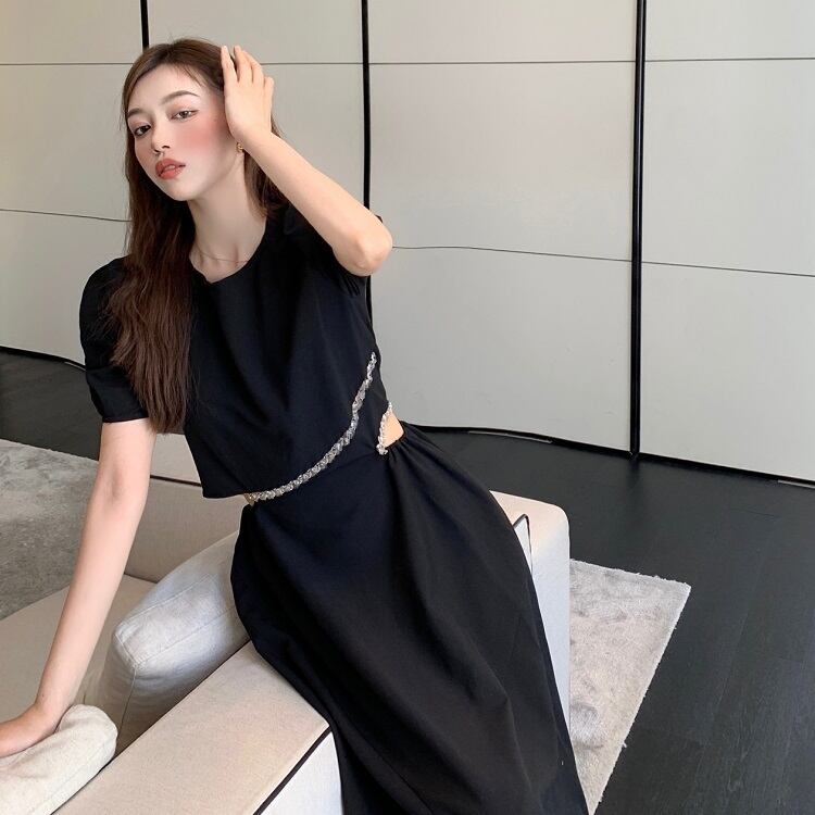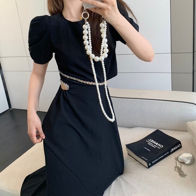 ウェストスタイルブラックドレス スリーブロングスカート サマー 夏物 Xiaofeijia63134150491