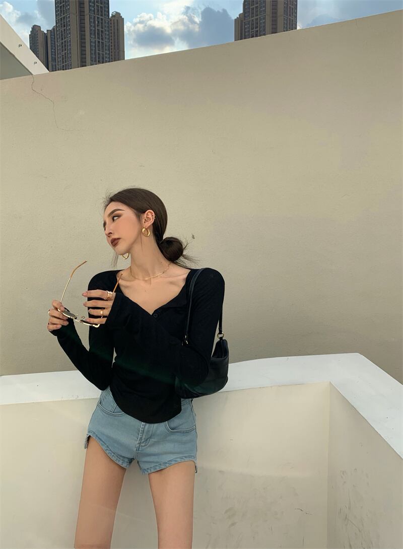 色:アプリコットトップ,ブラックトップ,ブルーショートパンツ,黒のショートパンツ