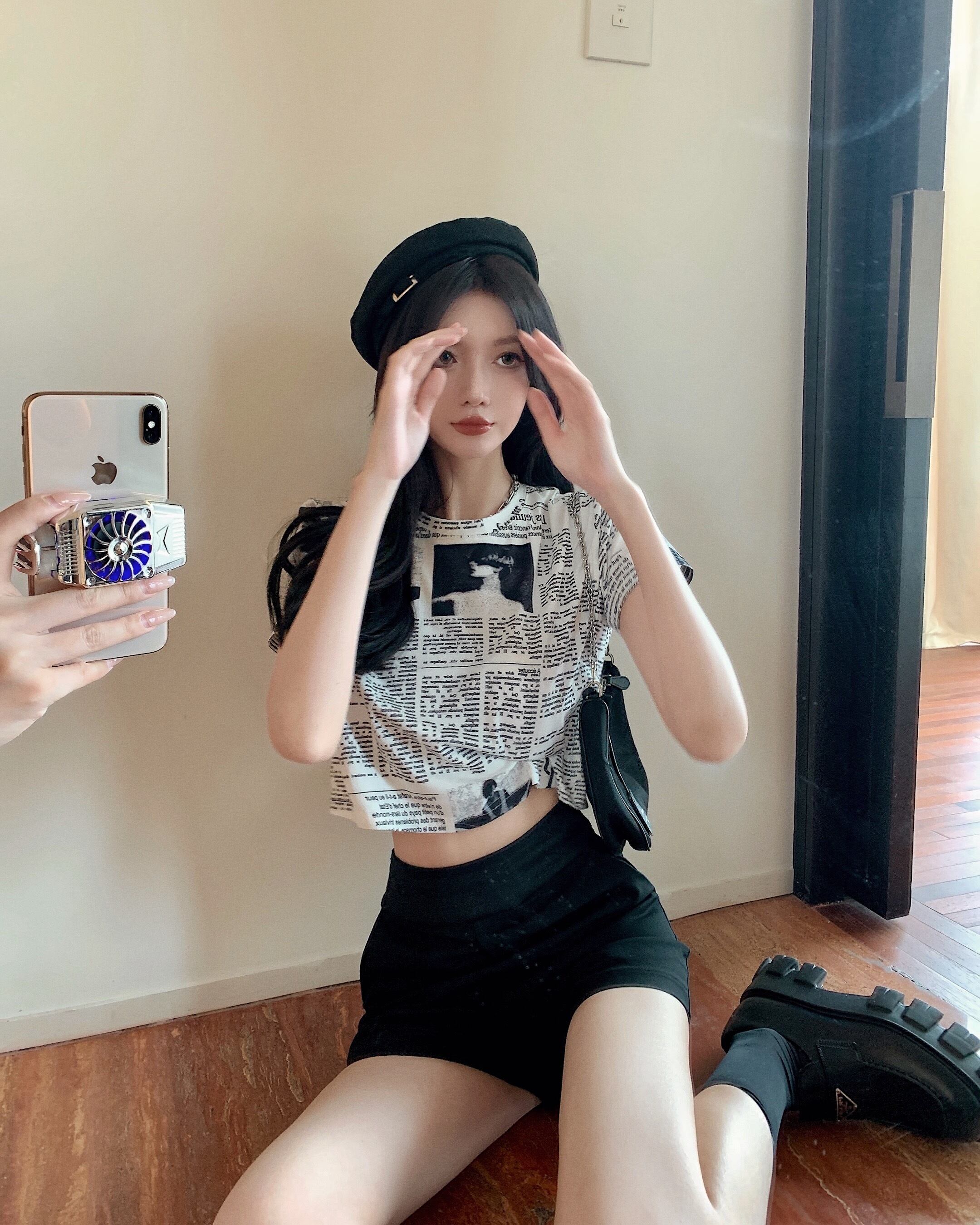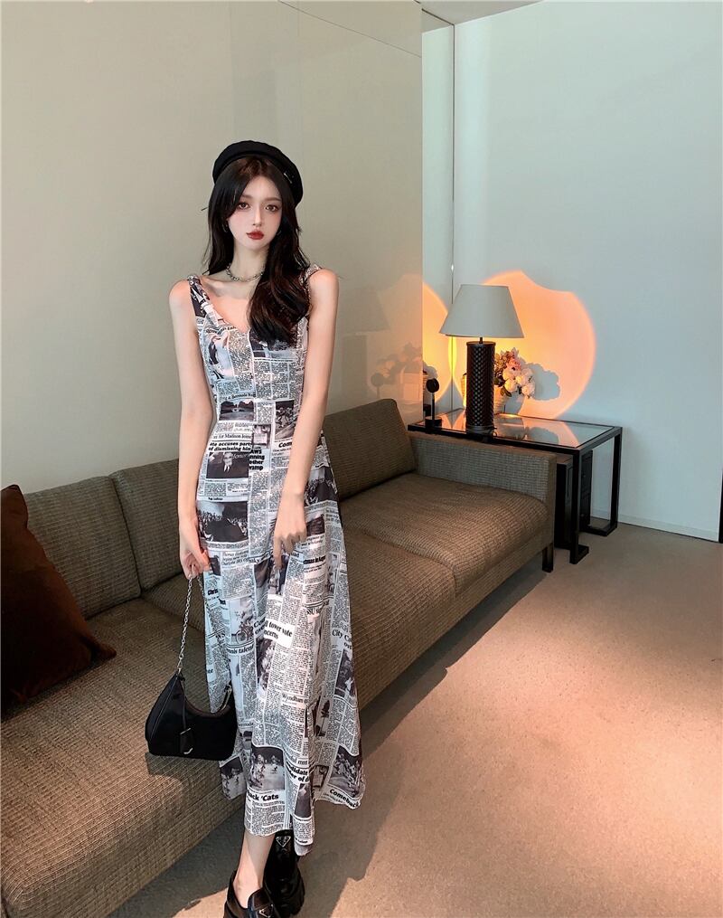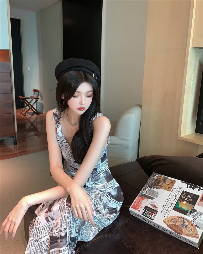 プリント柄ドレス サマーウェストスカート Tシャツ トップス 夏物 Xiaofeijia83723800803