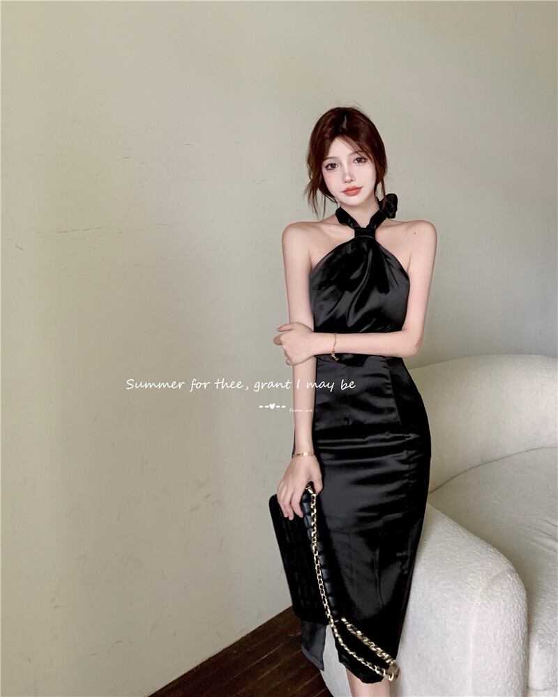ブラックホルターバックトップス スカート シルク Xiaofeijia61186701107