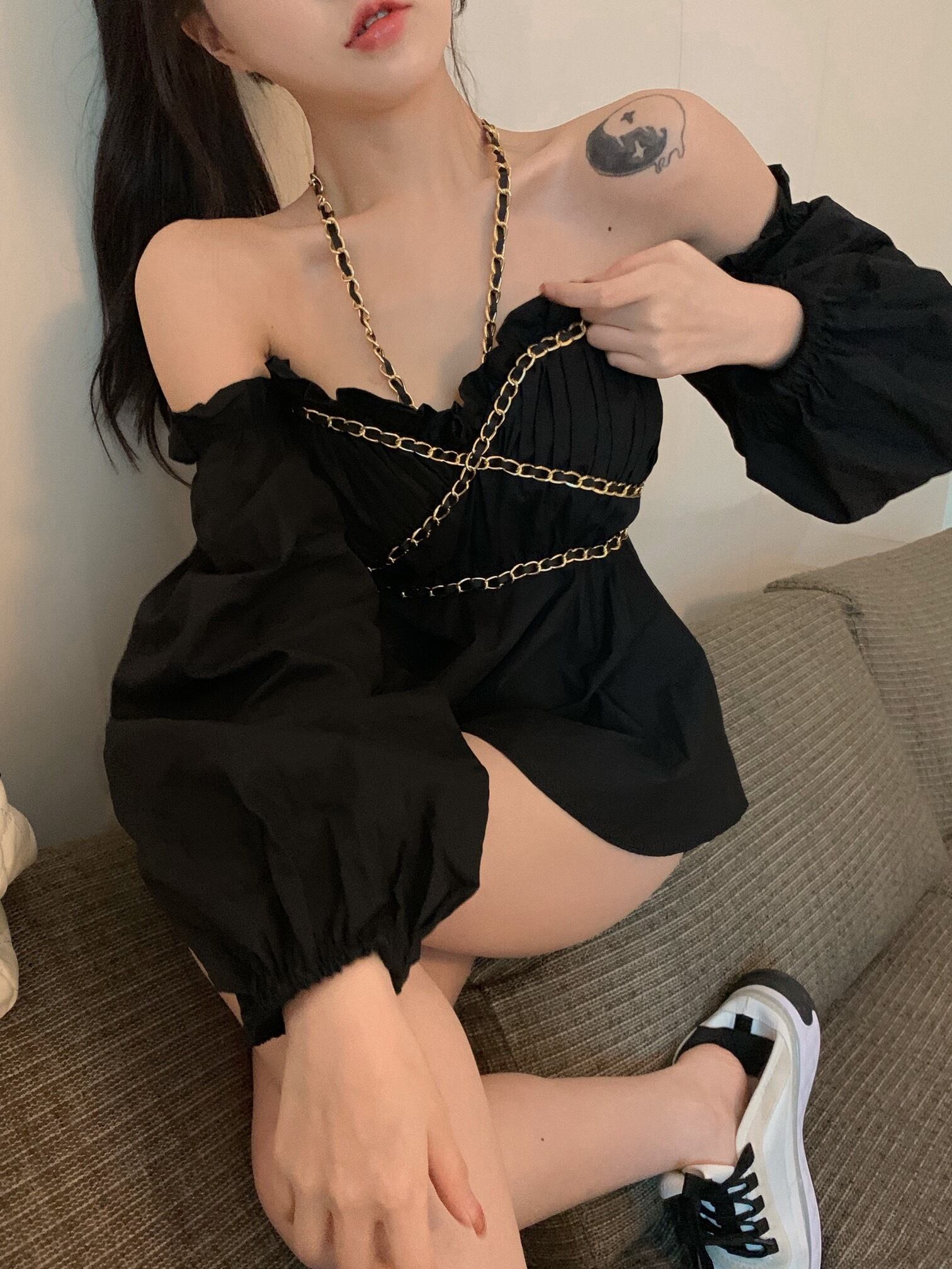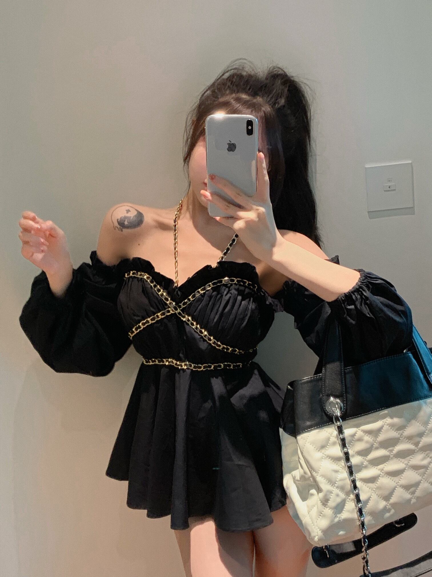 ホルターブラウス レディース ロング ランタンスリーブ Xiaofeijia89748542485